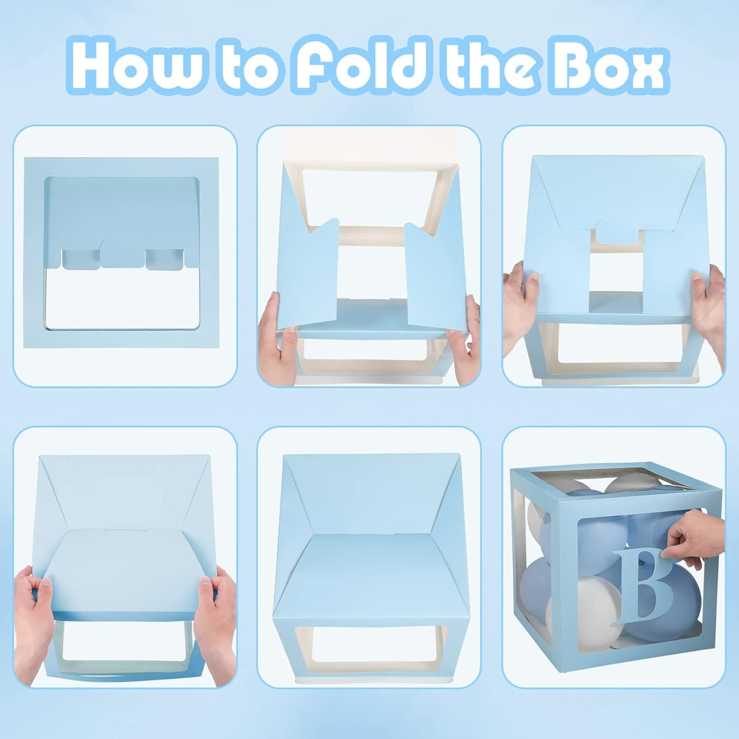 Set 4 Cutii pentru Baloane Baby, Contur Albastru - Eleganță și Funcționalitate pentru Momentele Speciale!