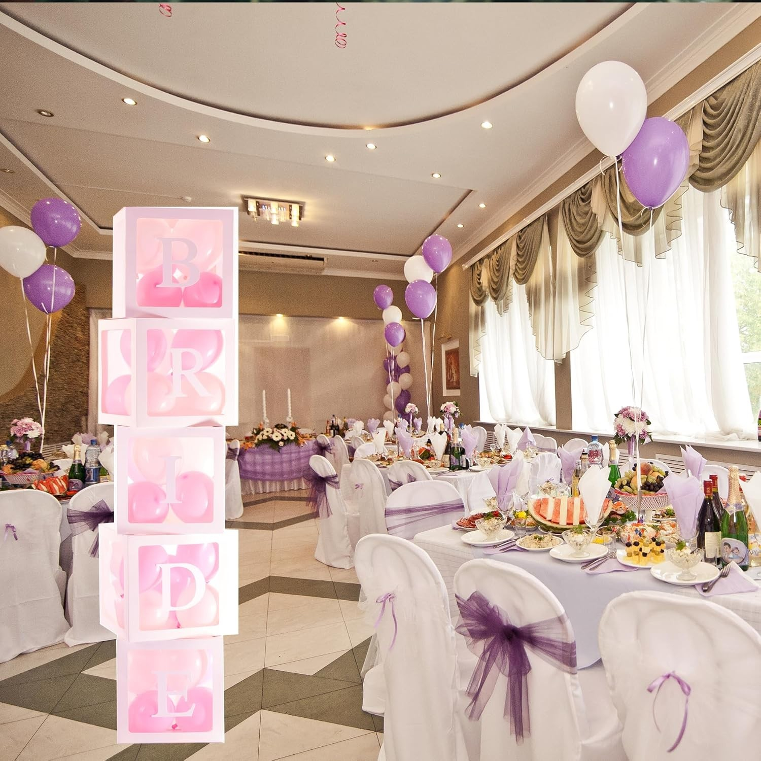 Set 5 Cutii pentru Baloane - Scris Bride, Contur Alb- 30x30 cm