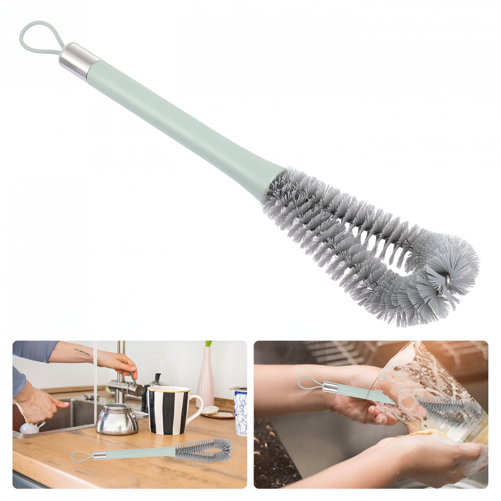 Perie de curățat pahare, căni, biberoane, cu mâner lung, 3.9x5.4x38.5cm, Verde