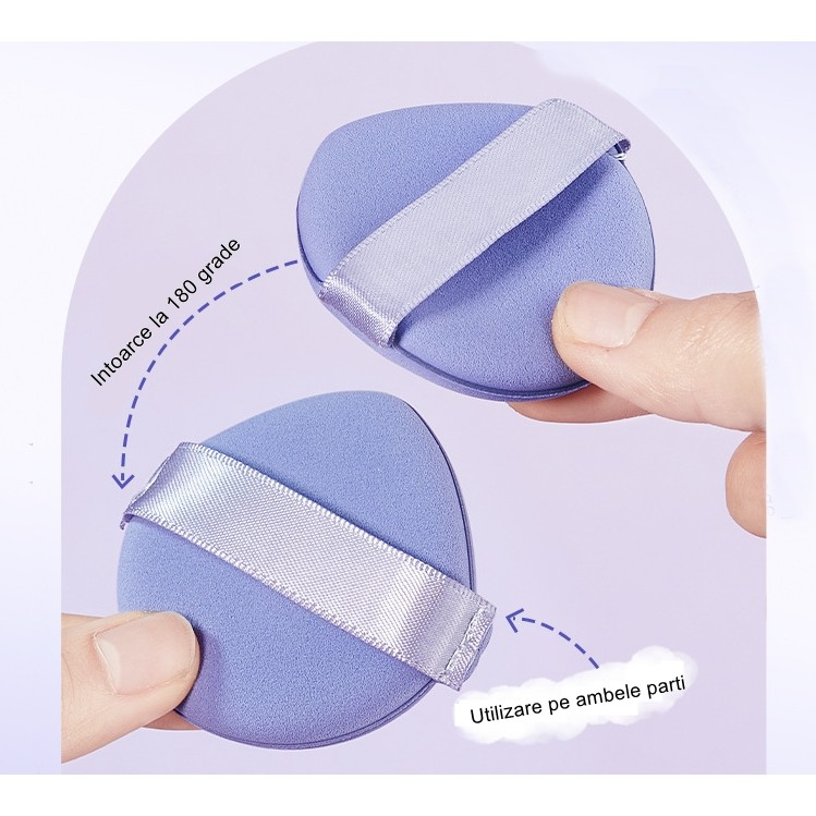 Continut Pachet: Burete de Machiaj Triunghi Flippy, Reutilizabili, Utilizare Umeda sau Uscata, 5.5 x 5.5 x 0.9 cm, Powder Puff, Mov