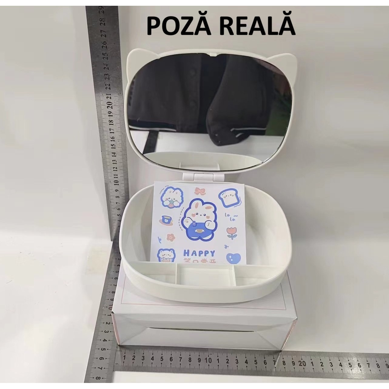 Acest set fermecător are o oglindă în formă de pisică, completată cu urechi și mustăți drăguțe, adăugând o notă de capriciu vanității tale.