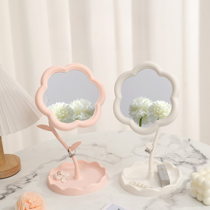 Îmbunătățiți-vă rutina de frumusețe cu oglinda de machiaj un accesoriu elegant și practic pentru orice birou. Cu un design inspirat din frumusețea florilor, această oglindă de machiaj rotativă, în formă de floarea soarelui, aduce un strop de veselie și culoare în orice spațiu.