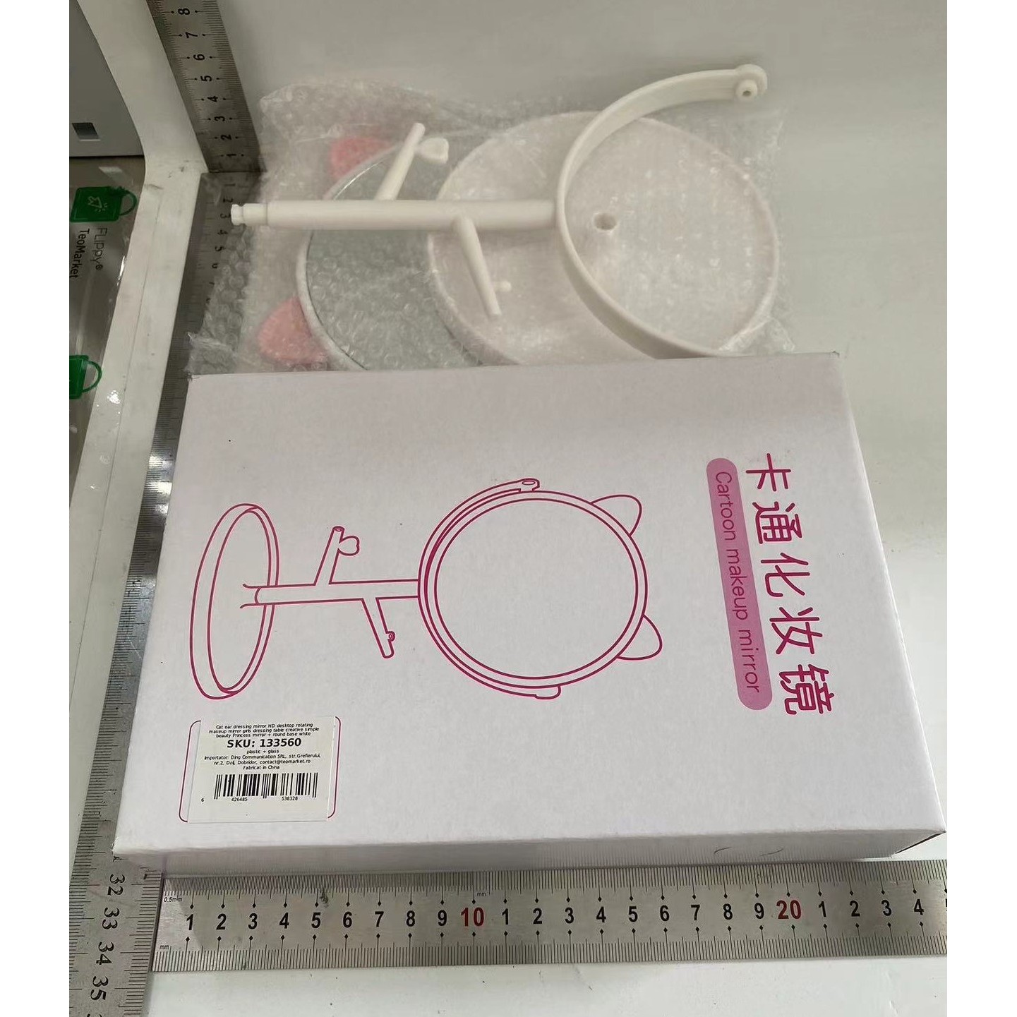 Oglinda cosmetică este un accesoriu indispensabil pentru machiaj și îngrijire personală. Cu un design modern și simpatic, având urechi de ursuleț, oglinda adaugă o notă de veselie spațiului tău. Baza rotundă multifuncțională și brațele laterale pentru bijuterii oferă soluții practice de organizare.