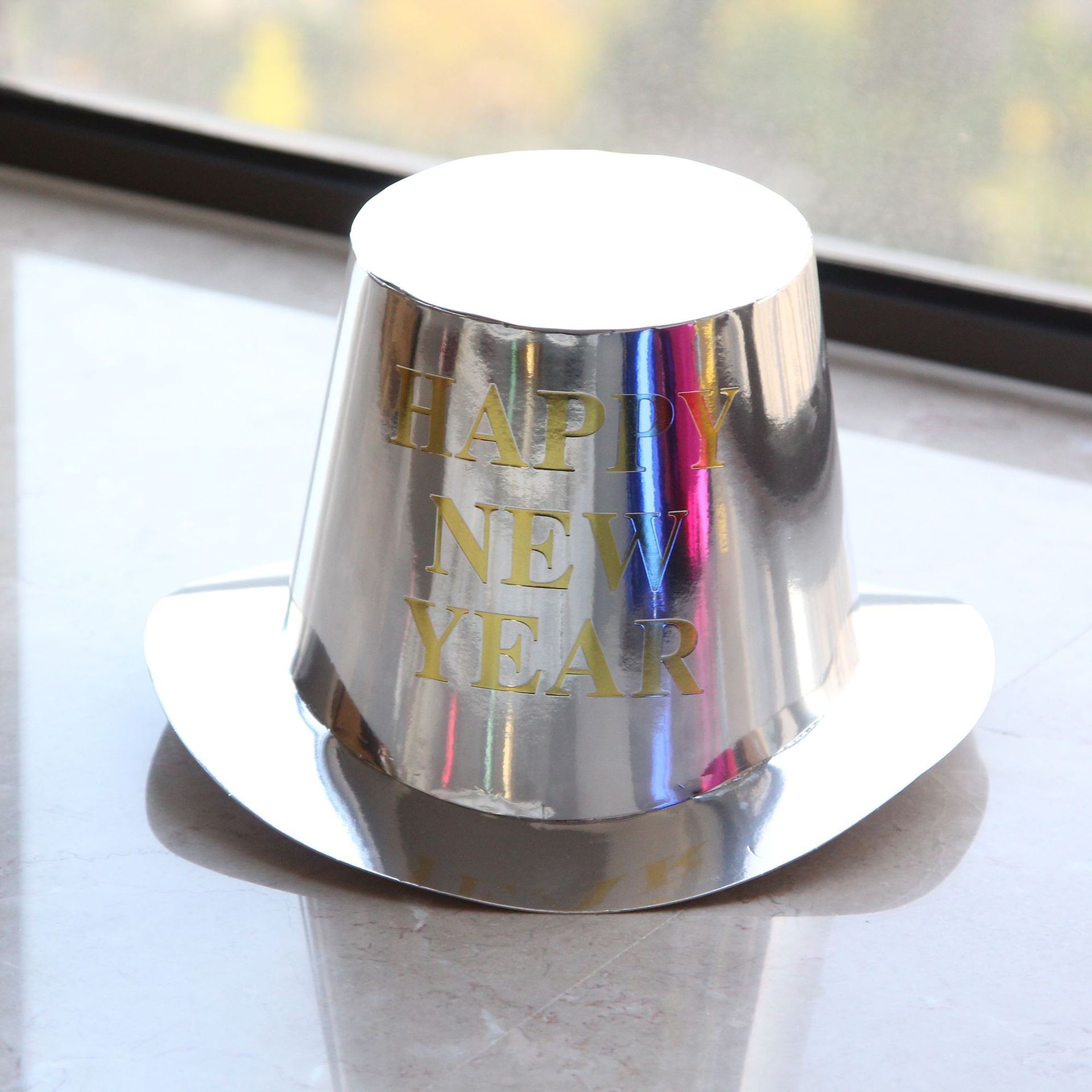 Cu inscriptia "HAPPY NEW YEAR" pe partea frontala si designul stralucitor, palaria devine un accesoriu ideal pentru poze memorabile si pentru a marca trecerea dintre ani intr-un stil festiv.
