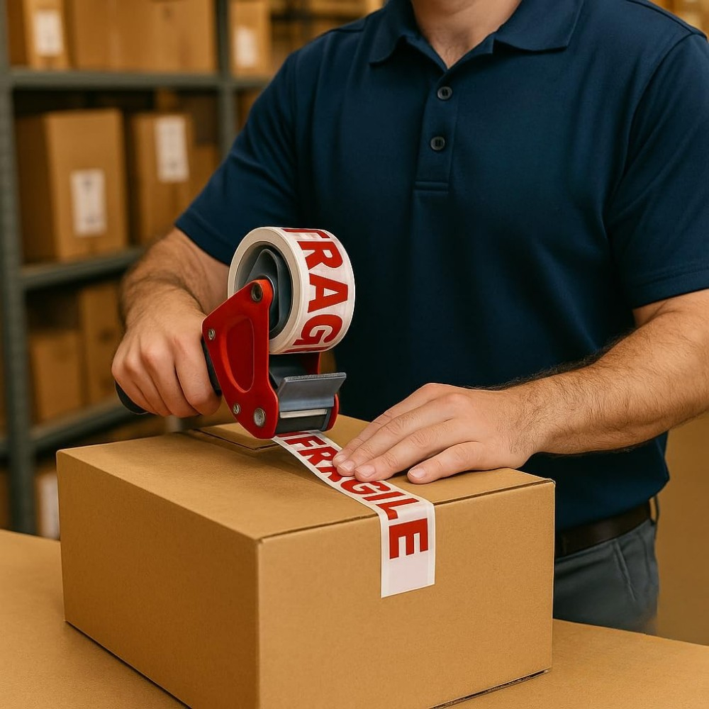 Banda afiseaza in mod vizibil mesajul FRAGILE, imprimat cu contrast puternic pe fundal transparent, asigurand recunoasterea rapida de catre personalul de manipulare si transport. Ajuta la reducerea riscului de deteriorare a continutului.