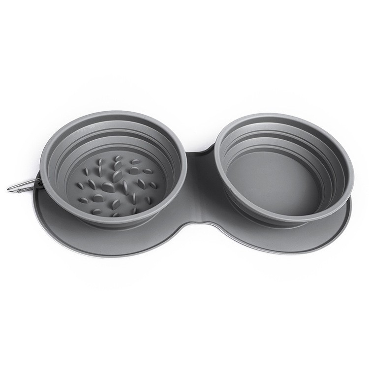 Continut Pachet: Bol Dublu pentru Animalul de Companie, Flippy, din Silicon, Pliabil, Inaltime Reglabila, Antialunecare, 42 x 21 x 5 cm, Gri