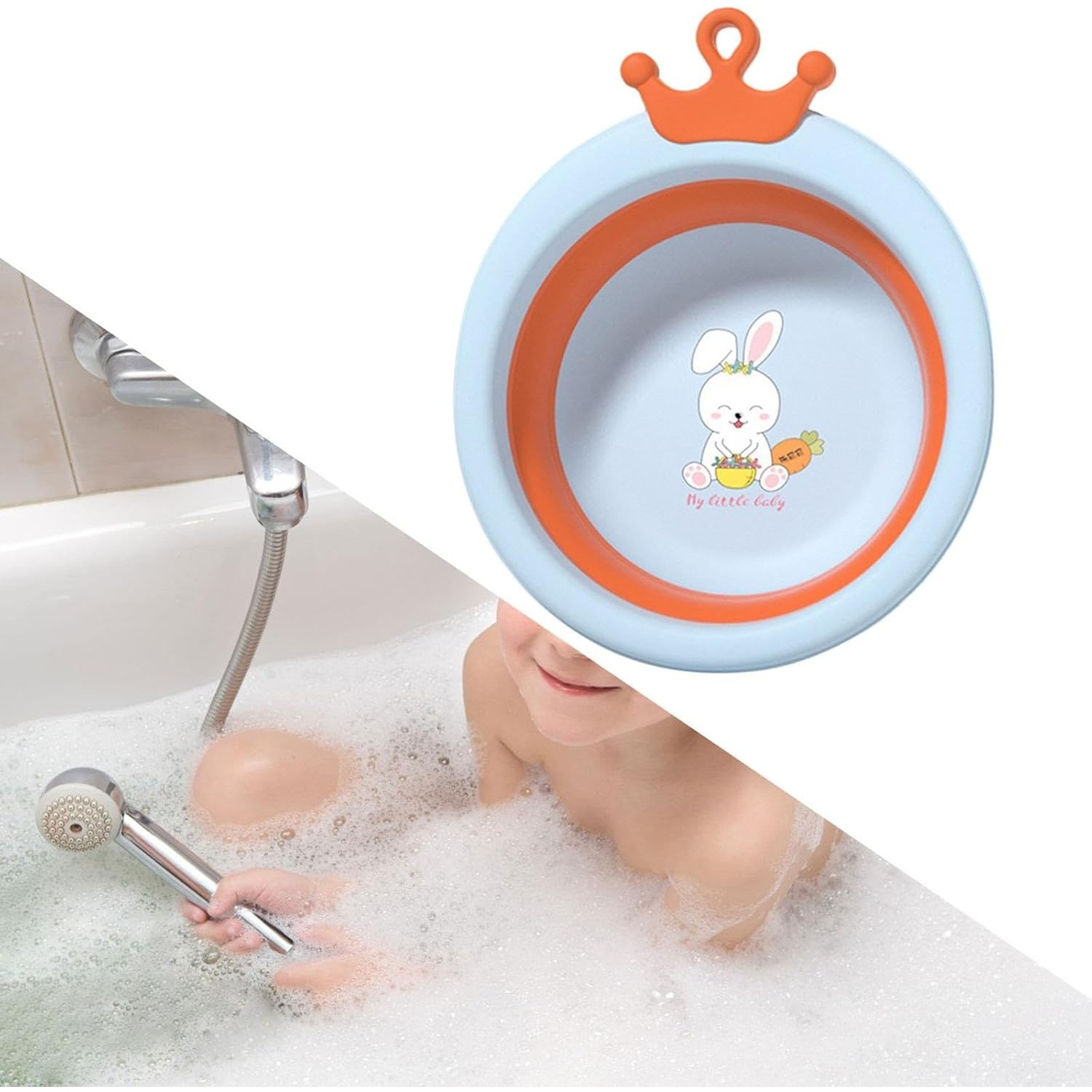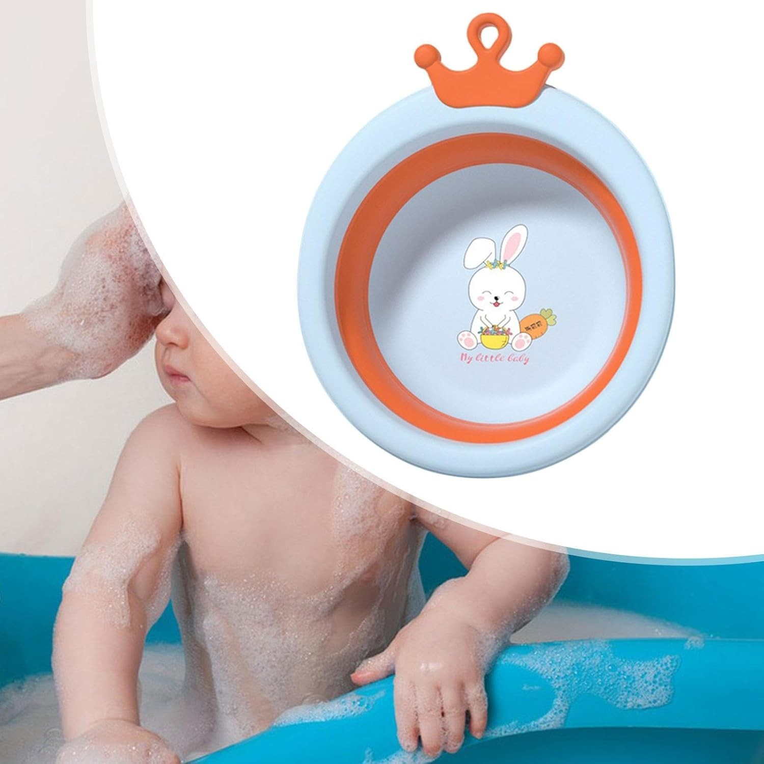 Descriere produs: Cadă pliabilă pentru baie - Model rotund cu iepuraș blue