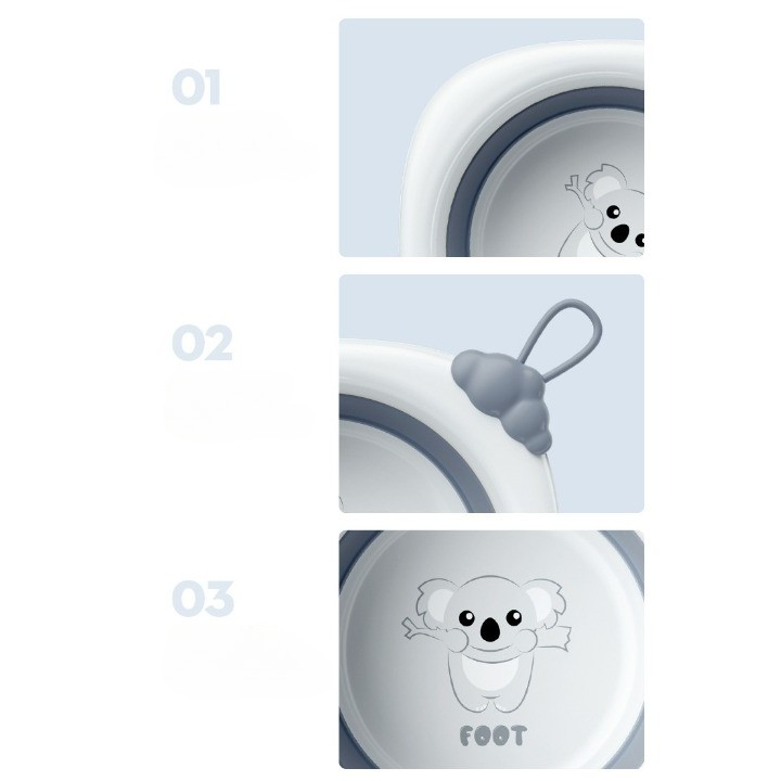 Cada Pliabila pentru Baie pentru Copii, Cadita pentru Bebelusi, Model Romb pentru Picioare Koala, Gri, 30x30x3.5 cm, 4L