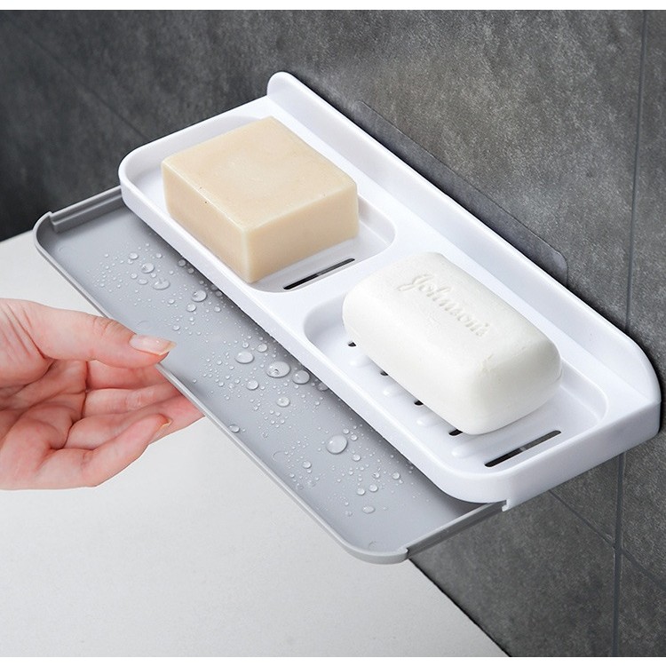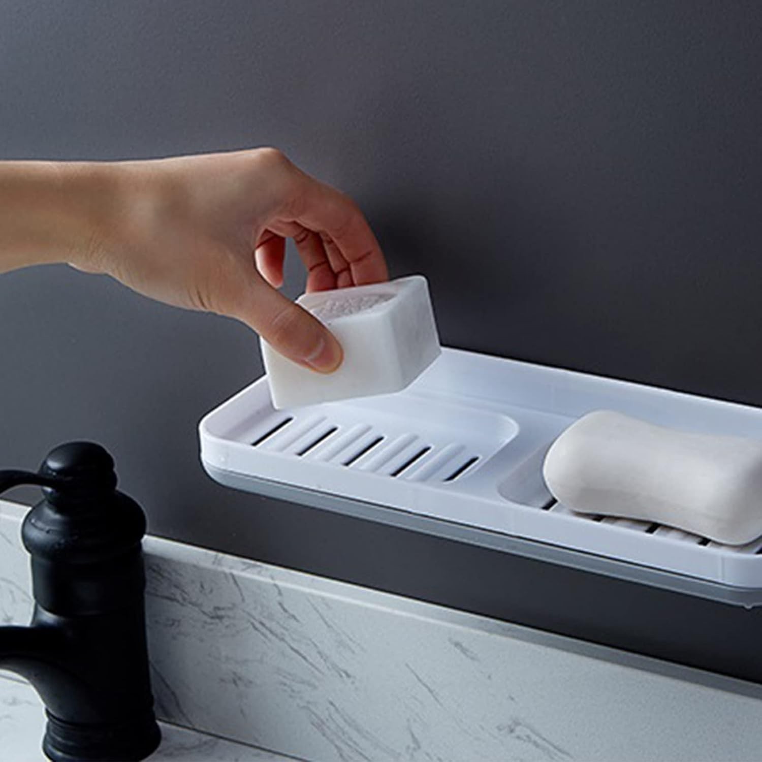 Savonieră Dublă, de Perete, cu Compartiment de Scurgere, Montare prin Lipire, 26 x 8 x 4 cm
