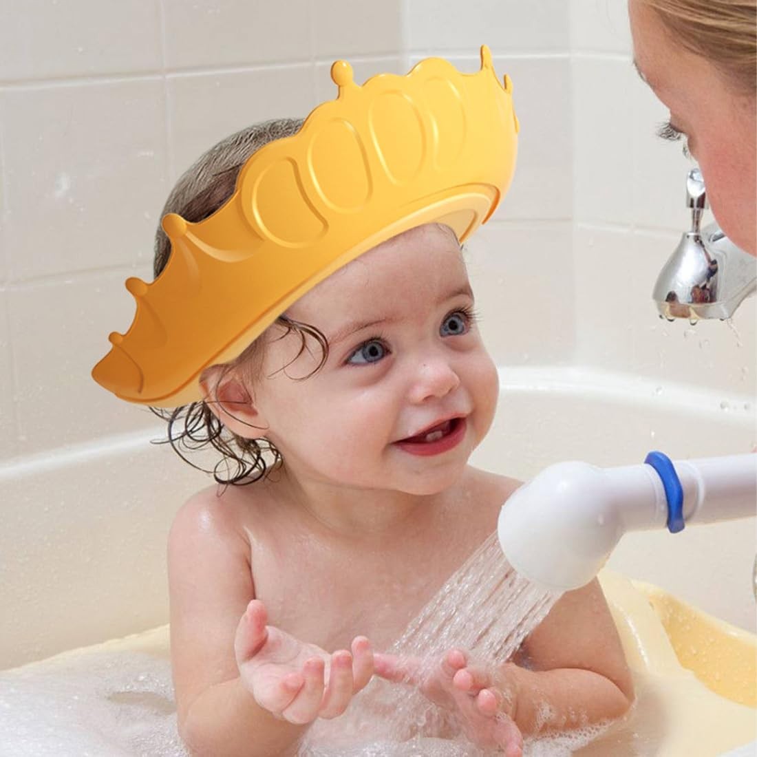 Transformă băile celui mic într-o experiență plăcută și sigură cu viziera de protecție special concepută pentru bebeluși! Cu un design adorabil în formă de coroana și fabricată din silicon moale, această vizieră protejează ochii și urechile bebelușului tău de apă și șampon în timpul băii.