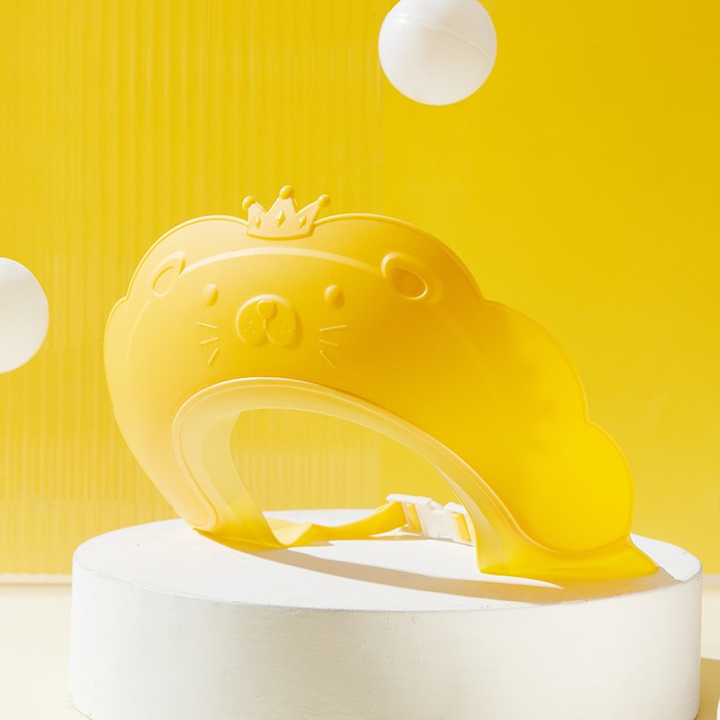 Viziera de Protectie Baie Pentru Copii, Fippy, Model Coronita Leu, Dimensiune ajustabila, Durabil, Usor de curatat, Impotriva Samponului, pentru Ochi si Urechi, TPE+PP, 21x20.5 cm, Galben