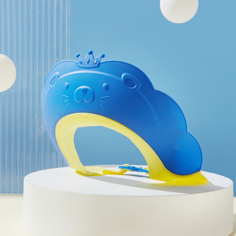 Viziera de Protectie Baie Pentru Copii, Fippy, Model Coronita Leu, Dimensiune ajustabila, Durabil, Usor de curatat, Impotriva Samponului, pentru Ochi si Urechi, TPE+PP, 21x20.5 cm, Albastru