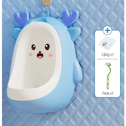 Pisoar pentru Baieti, 0-8 Ani, in Forma de Cerb, Perie Inclusa, Montare pe Perete, Carlig Autoadeziv Inclus, 29.8 x 23.8 cm, Albastru