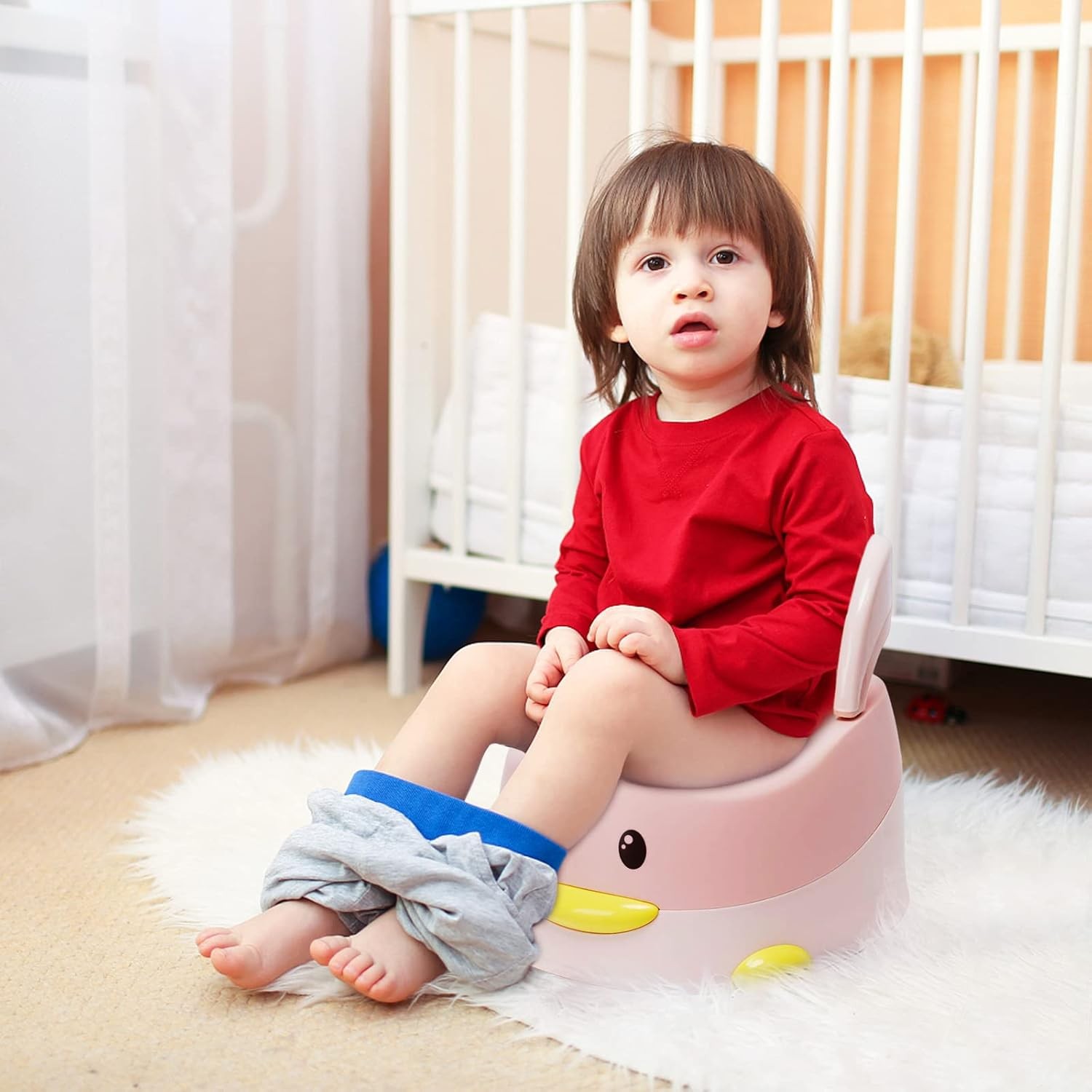 Oliță pentru Copii +6 luni, Detasabilă, cu Capac, Antiderapantă, din Plastic, Colac Moale, Model Rățușcă, 38x32x30 cm