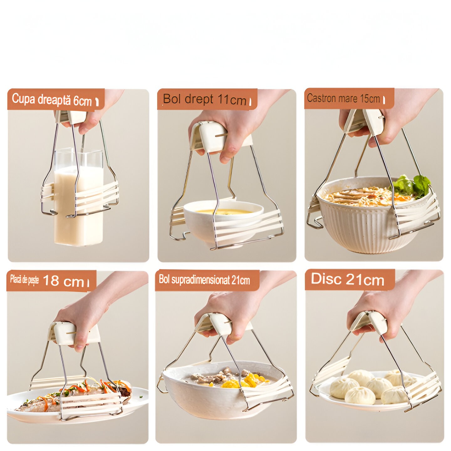 Instrument multifuncțional: poate fi folosit pentru a ține boluri, farfurii și pentru a preveni arsurile și alunecările.