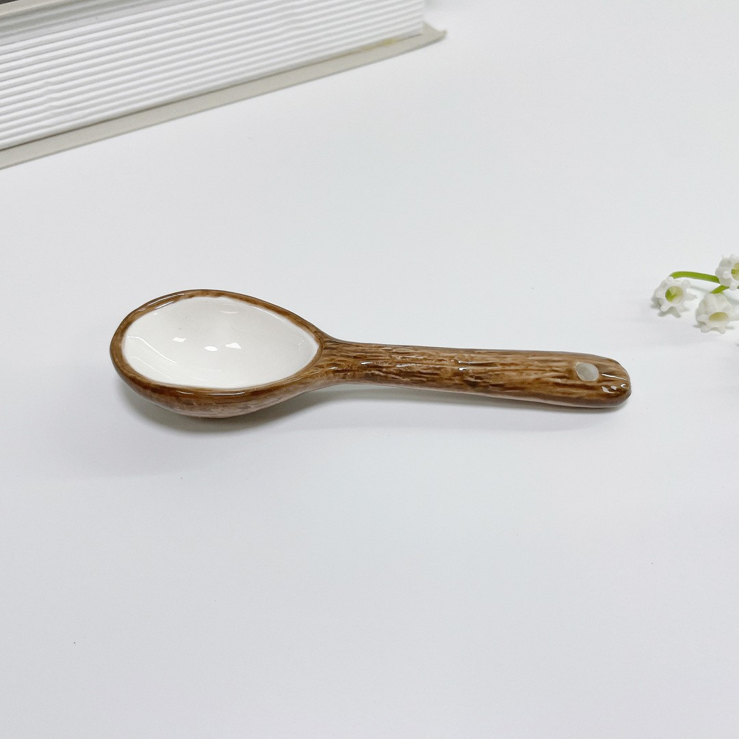 Continut Pachet: Cana din Ceramica, Flippy, 201-300 mL, cu Lingurita, Model Nuca de Cocos, Maro
