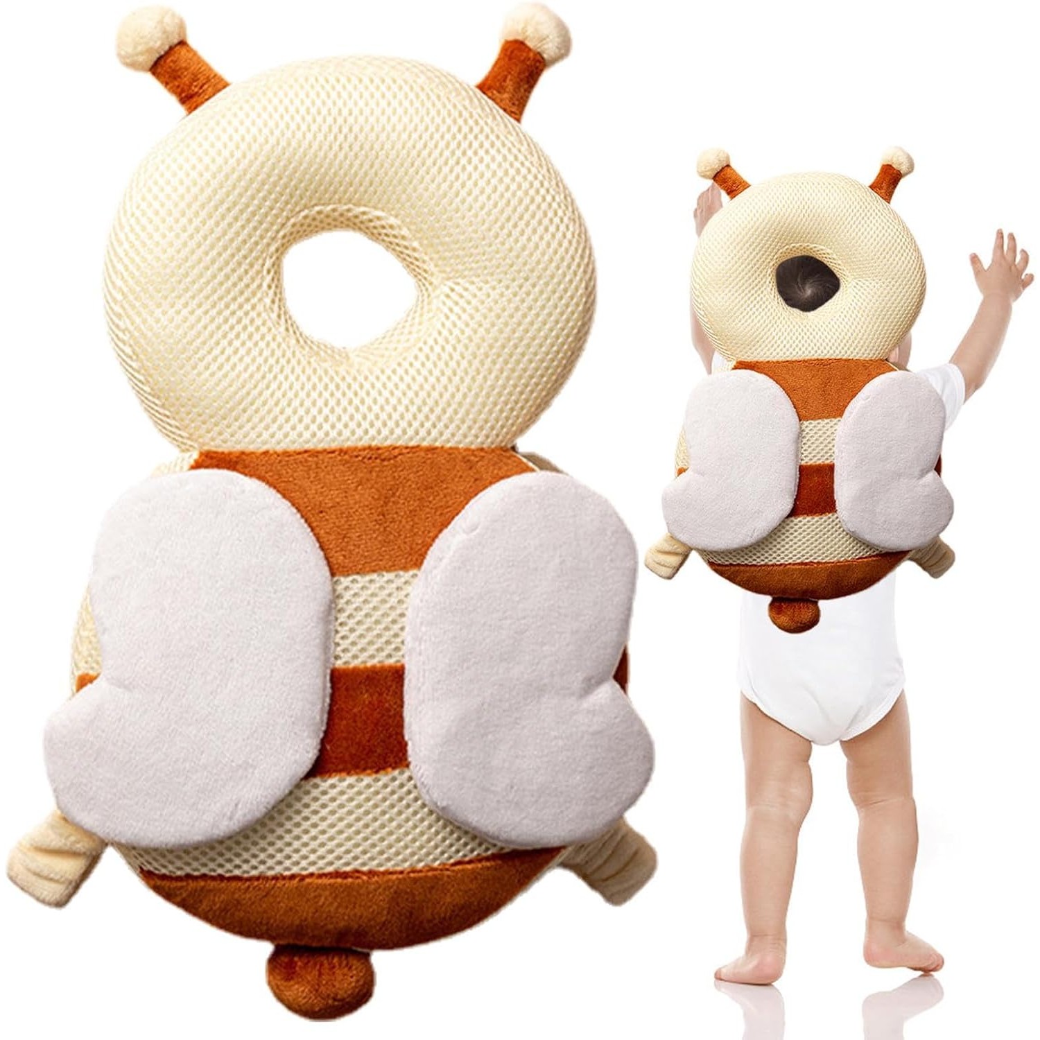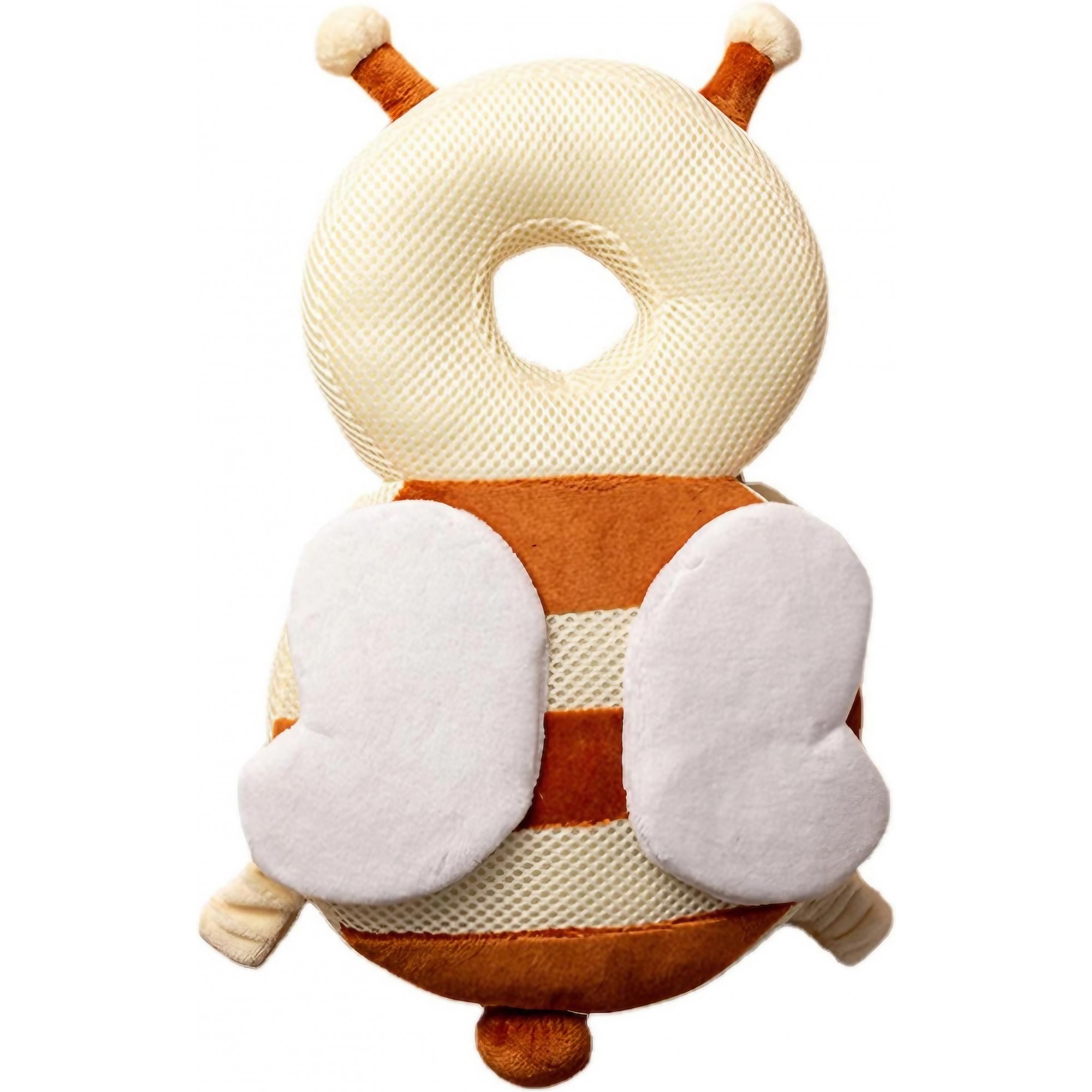 Perna tip Rucsac pentru Protectia Capului, Tetiera tip Albina, pentru Bebelusi, Design tip Plasa, 33x6x19 cm, 180 g, Maro/Bej