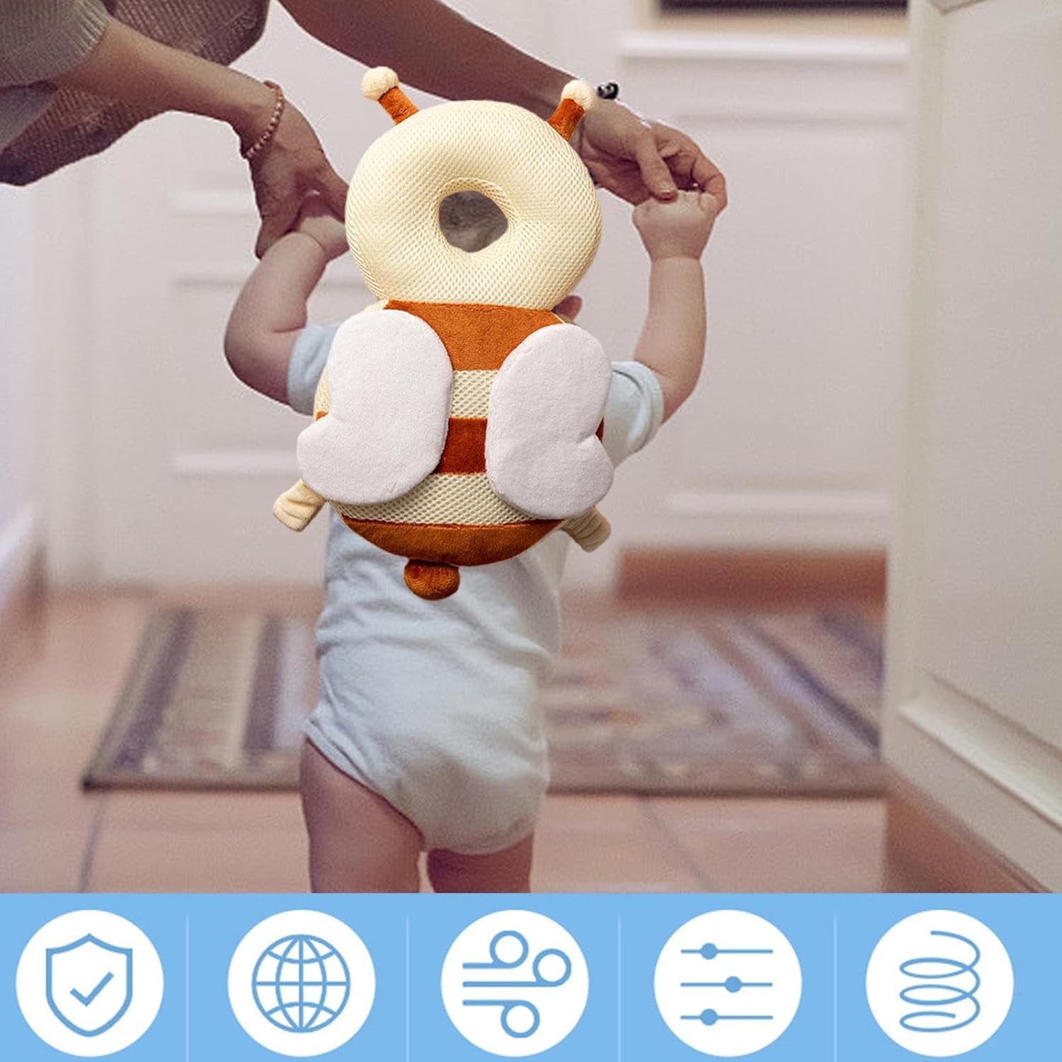 Siguranță în mișcare: Oferă protecție capului bebelușului în timpul căzăturilor accidentale.