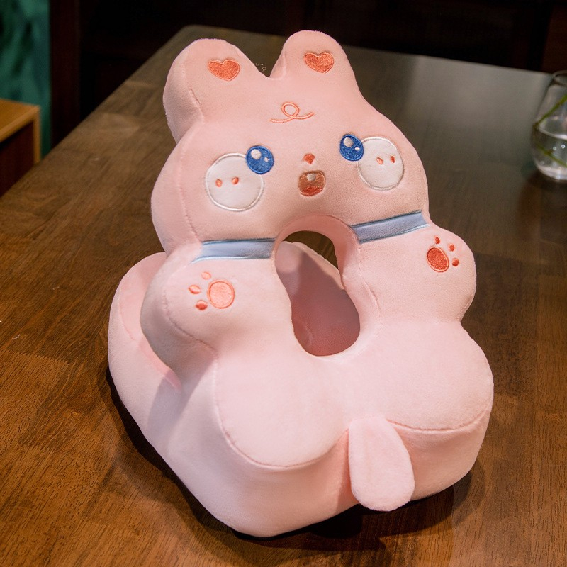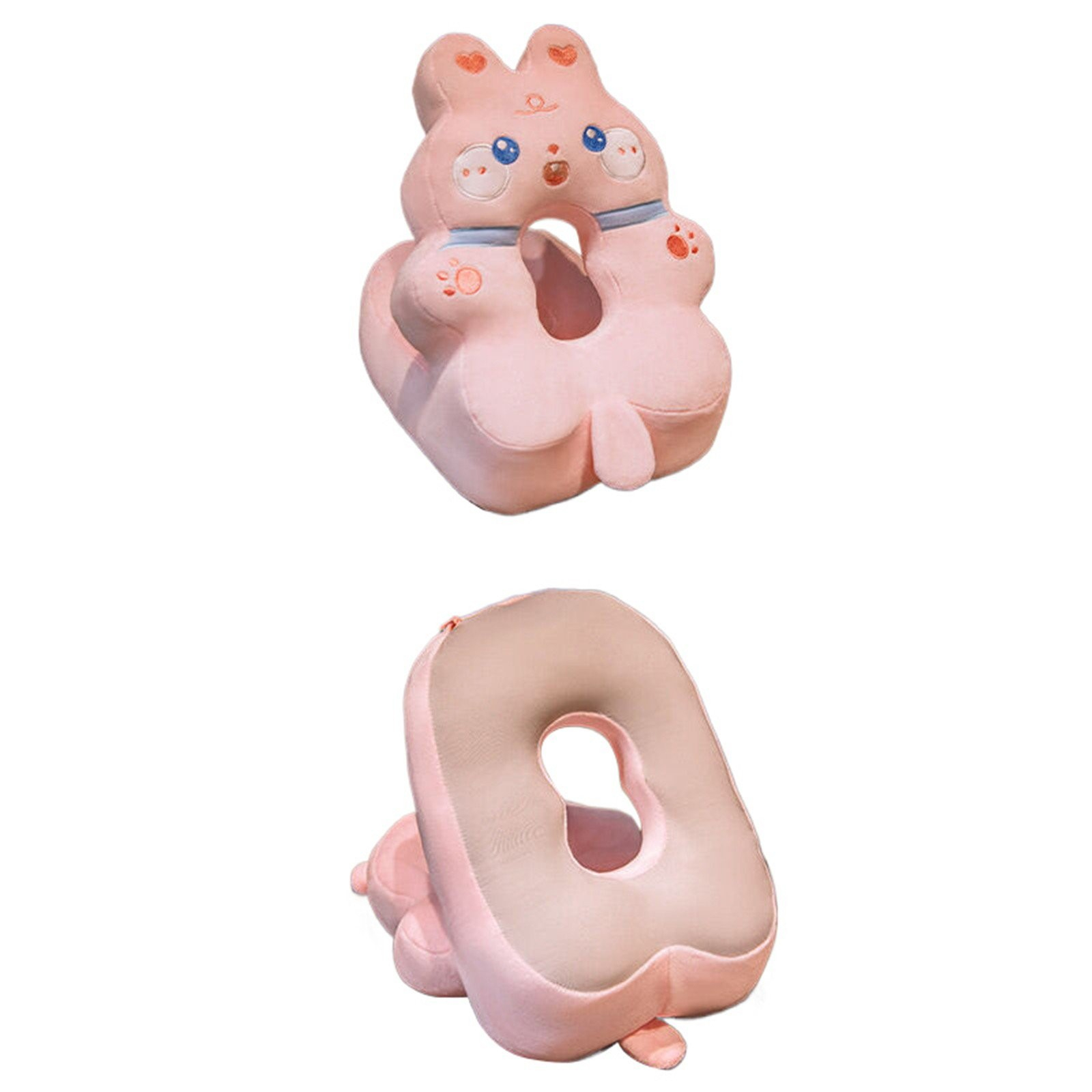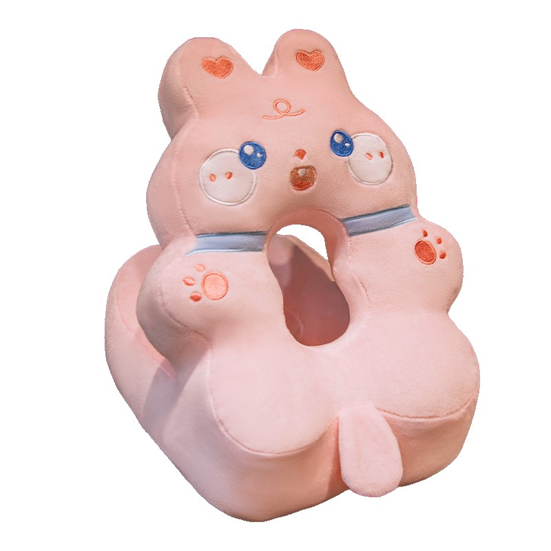 Perna din Spumă, pentru Birou și Călătorii, Model Iepure, Lavabilă, cu Umplutură de Bumbac, Roz, 30 x 35 x 30 cm