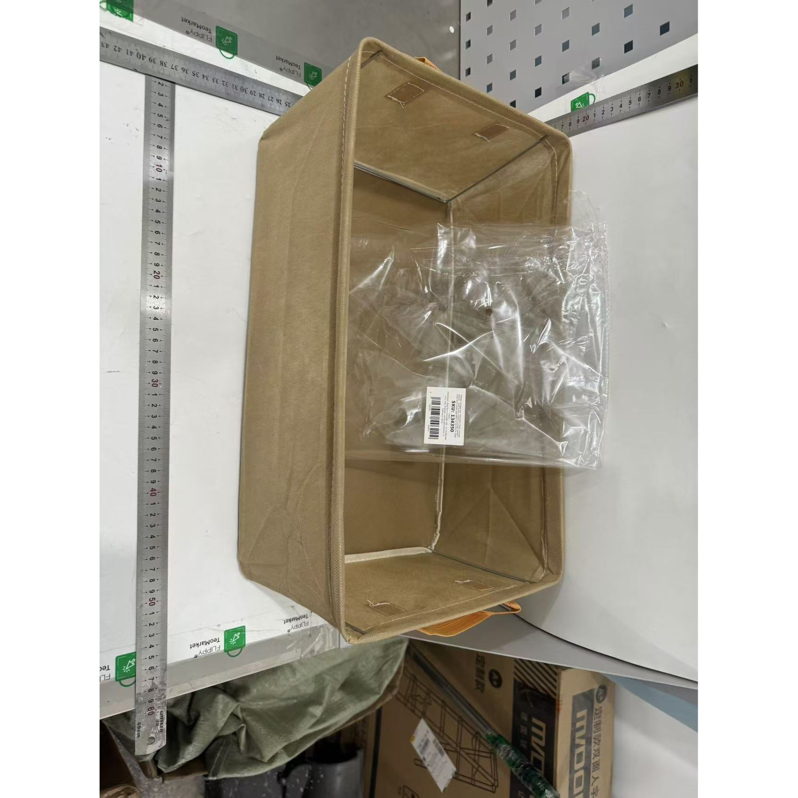 Cutie Depozitare pentru Haine, lucruri, din Textil cu Cadru Metalic, Manere Laterale, forma Dreptunghiulara, 47 x 28 x 20 cm, volum 26 L, Kaki