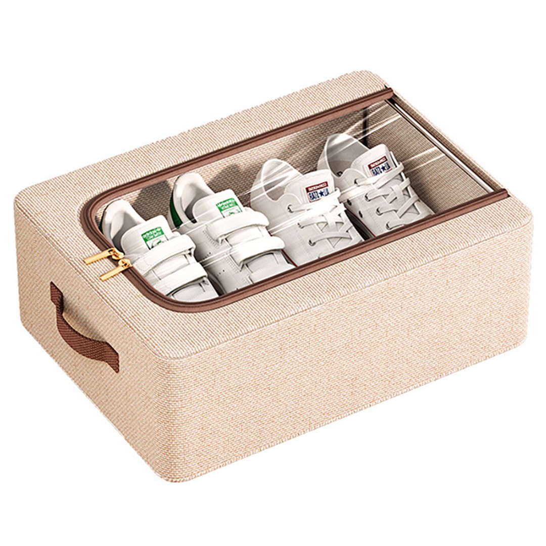 Cutie Depozitare cu Cadru Metalic, pentru Incaltaminte, Haine, Lingerie, Fermoar Calitativ, Fereastra Transparenta, Manere Laterale, 40 x 30 x 15 cm Bej