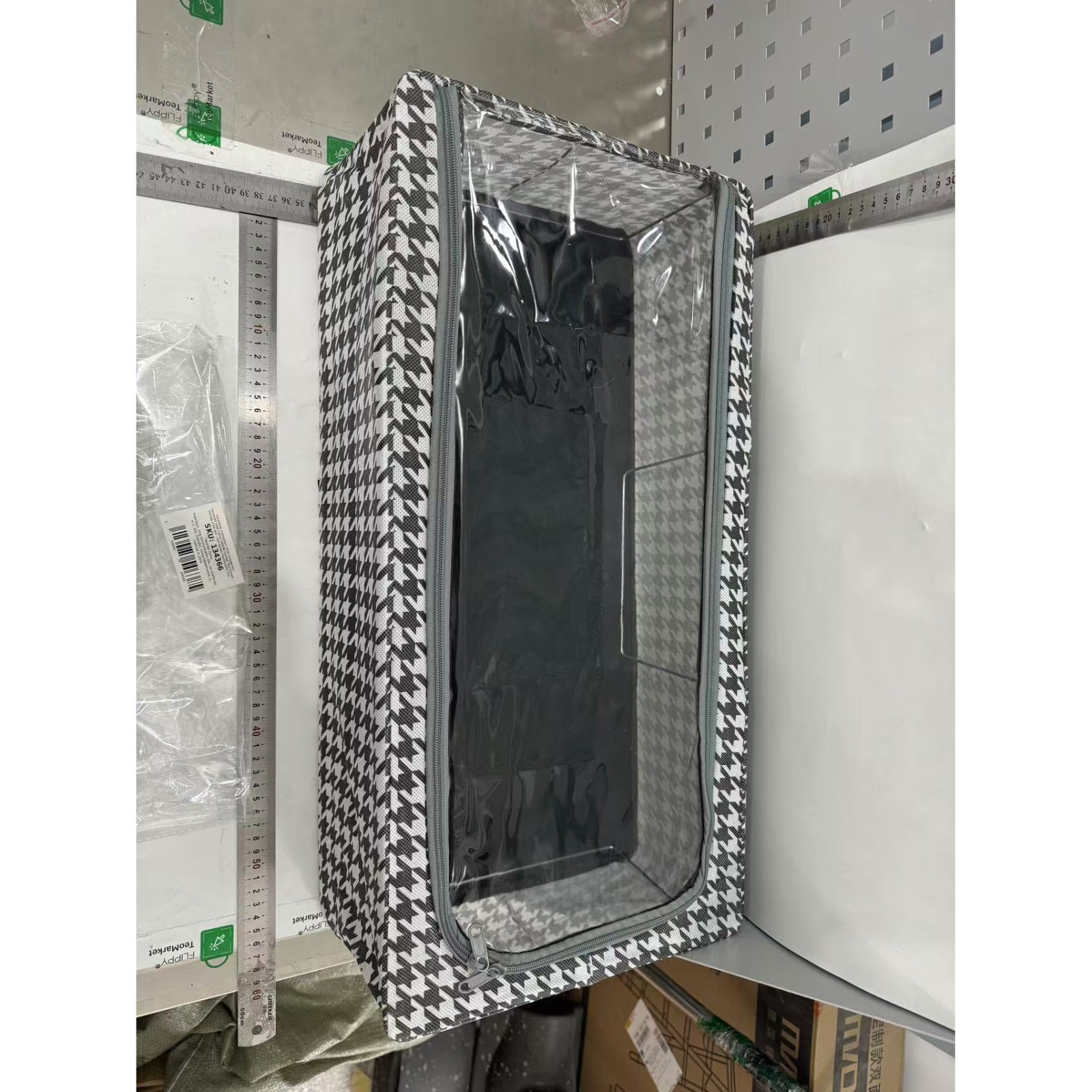 Cutie Depozitare cu Cadru Metalic, pentru Incaltaminte, Haine, Lingerie, Fermoar Calitativ, Fereastra Transparenta, Manere Laterale, 60 x 30 x 16 cm, Alb Negru