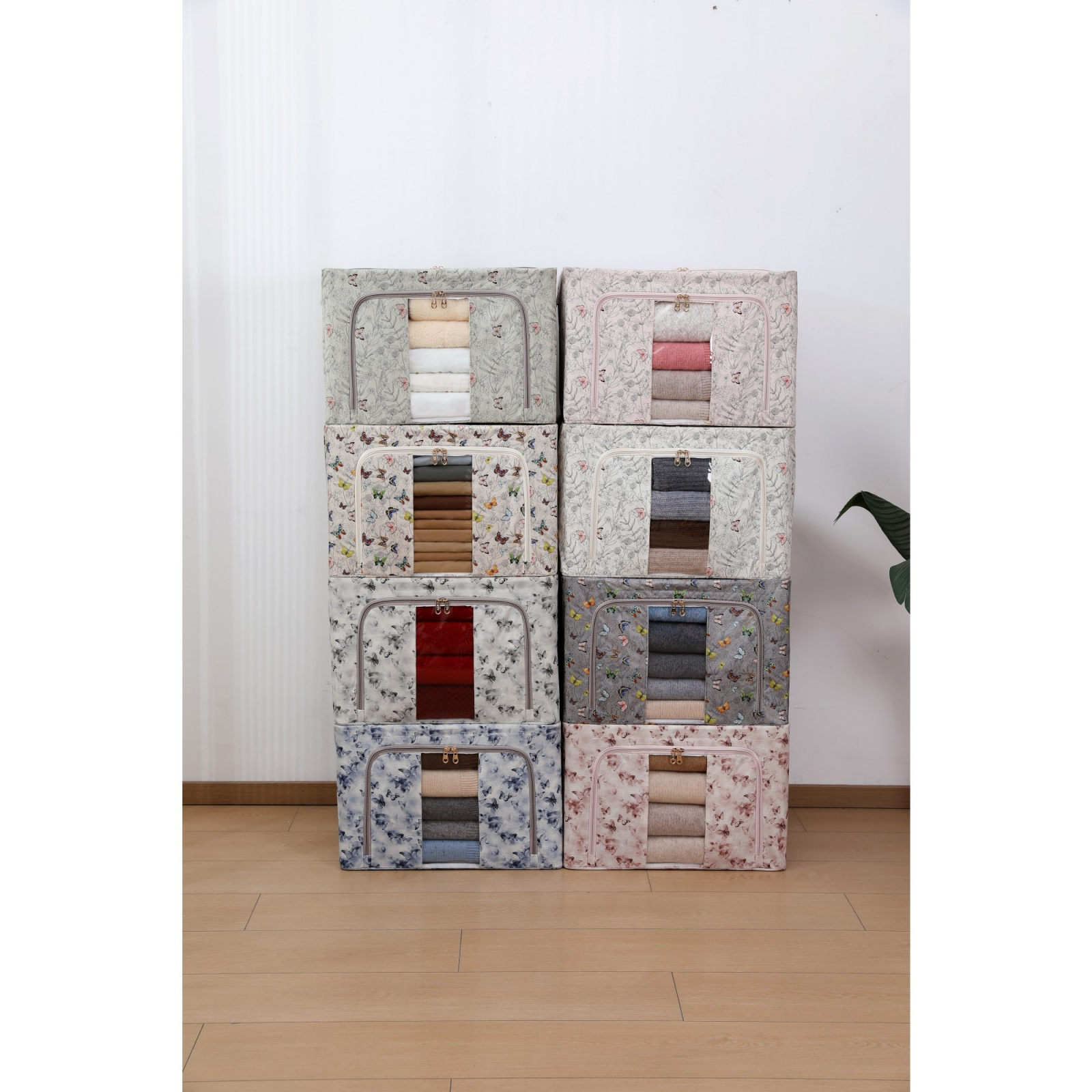 Cutie Depozitare 66L, din Material Textil, 50 x 40 x 33 cm, pentru Haine și Lenjerii, Model Fluturași