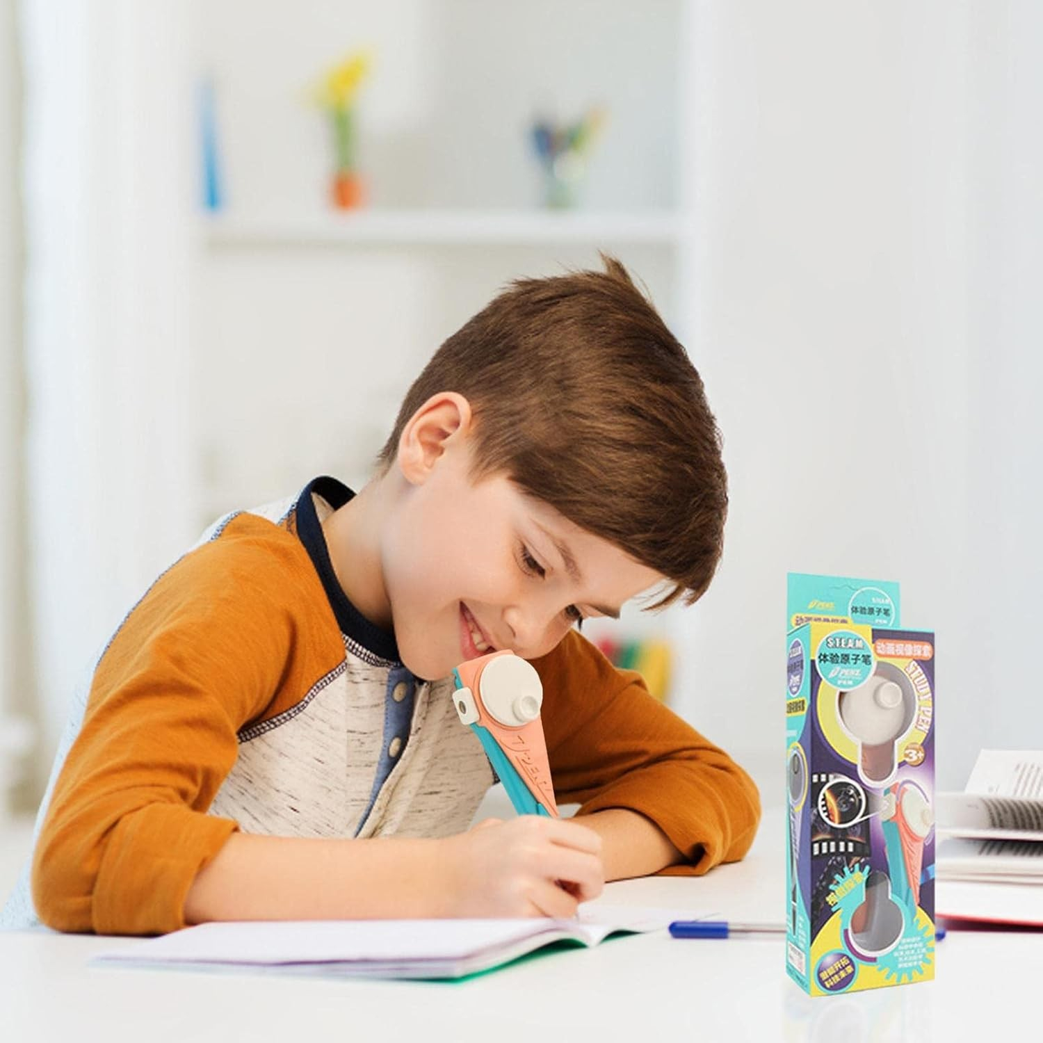 Acest pix multifuncțional este mai mult decât un simplu instrument de scris, fiind o combinație între o jucărie și un accesoriu creativ care stimulează imaginația celor mici.