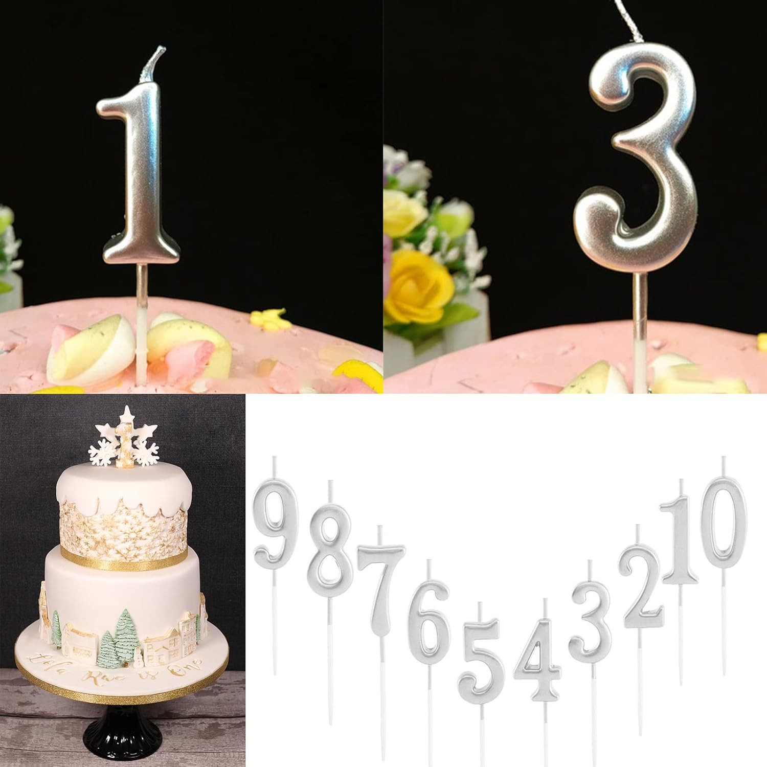 • Design elegant: Model cifră, cu finisaj argintiu lucios, ideal pentru decorarea torturilor festive.