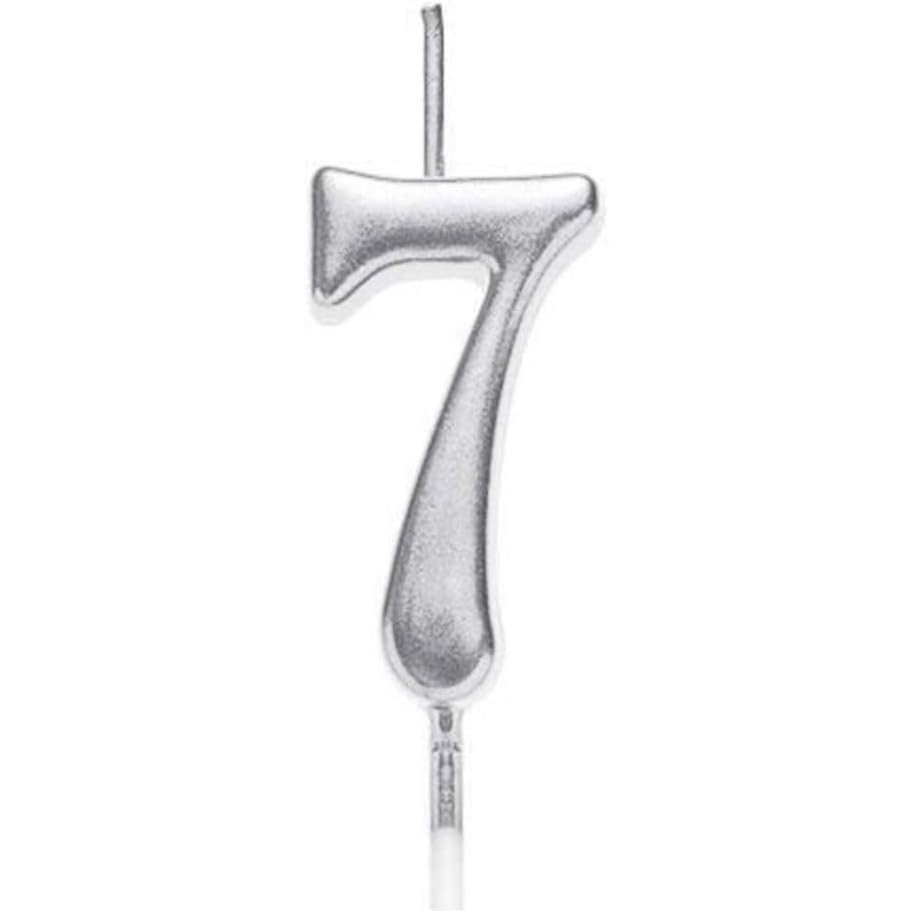 Lumanare de Tort, Model Cifra 7, Party, 4.5 x 2.5 cm, din Parafina, Argintiu