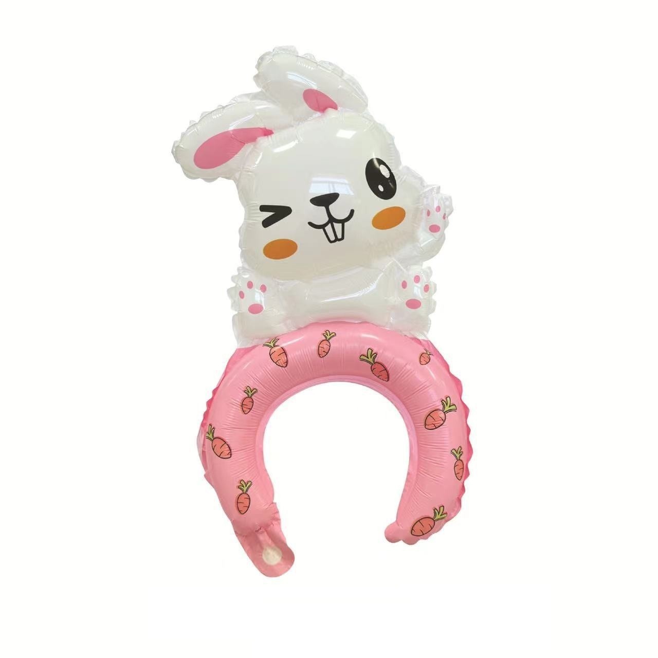 Balon din Folie Metalizata, Tip Coronita, Model Iepure, Ambalaj Individual, Pai Inclus, Umflare cu Aer sau Heliu, 48 x 28 cm, Roz