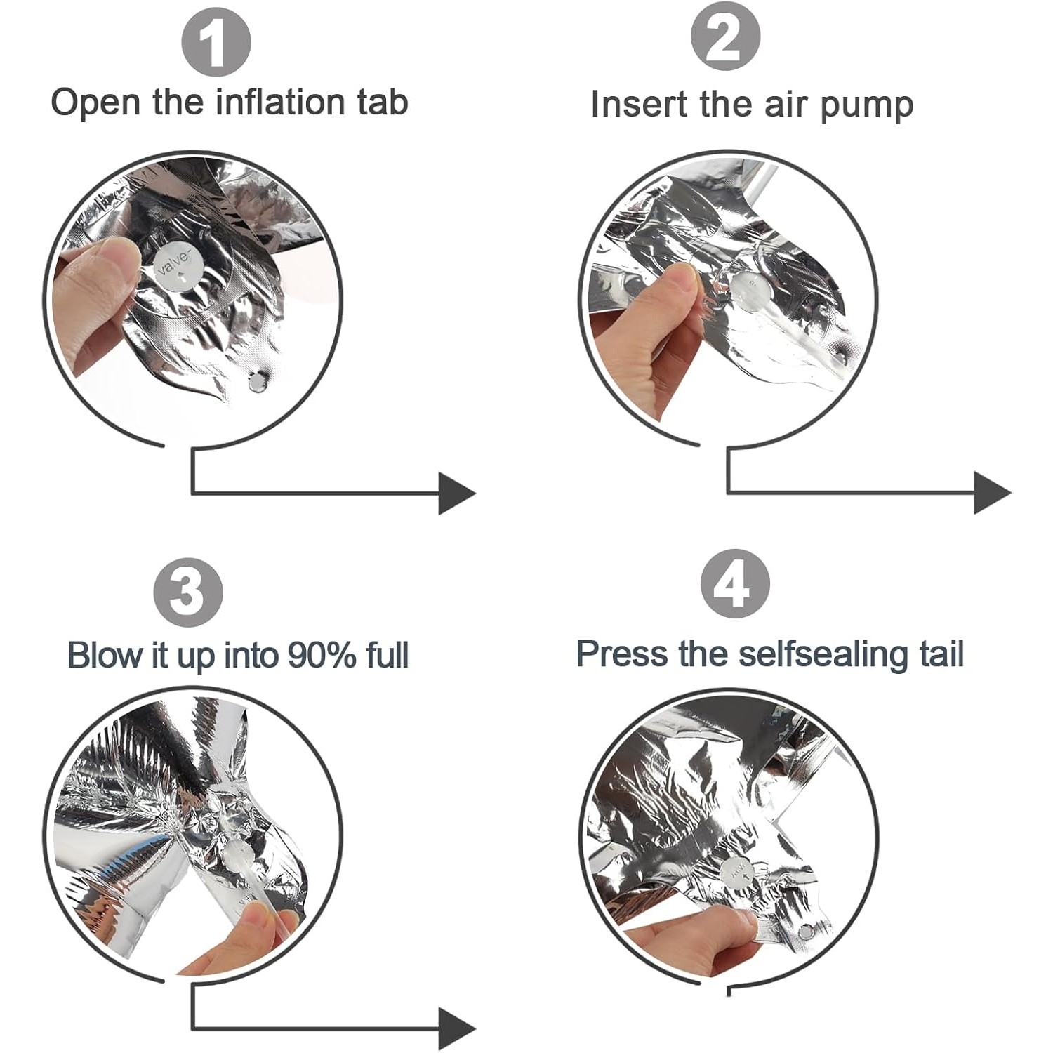 Fabricate dintr-un material de calitate superioară, folia de aluminiu, baloanele sunt durabile și rezistente. Ele pot fi umflate atât cu aer, cât și cu heliu, oferindu-ți flexibilitatea de a le folosi în diverse decoruri. Setul include și un pai transparent pentru o umflare ușoară, astfel încât să poți pregăti rapid spațiul pentru petrecere.