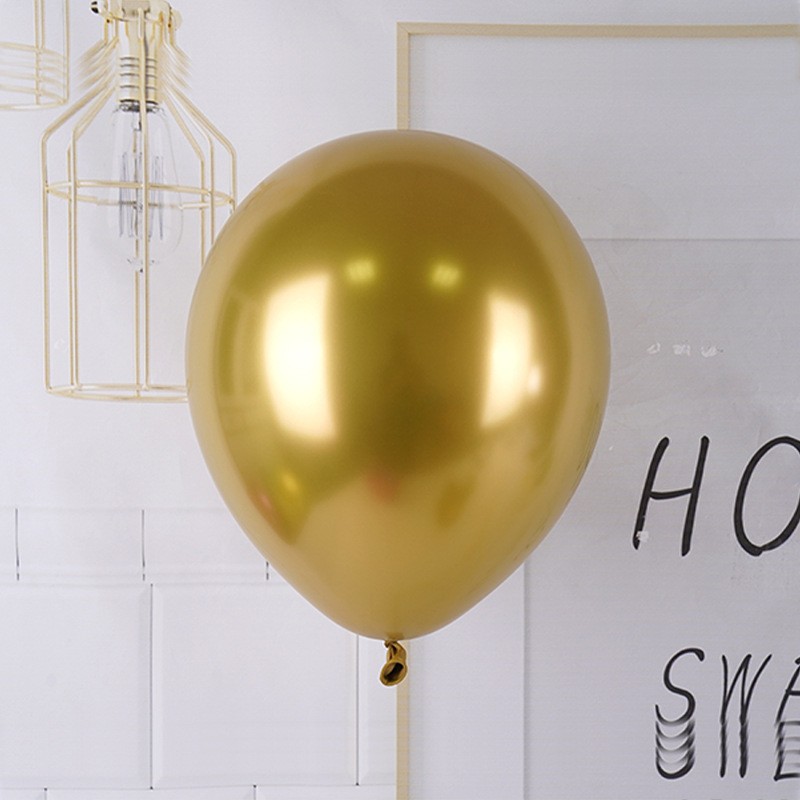 Set 12 Baloane Latex Chrome 13 cm, Auriu