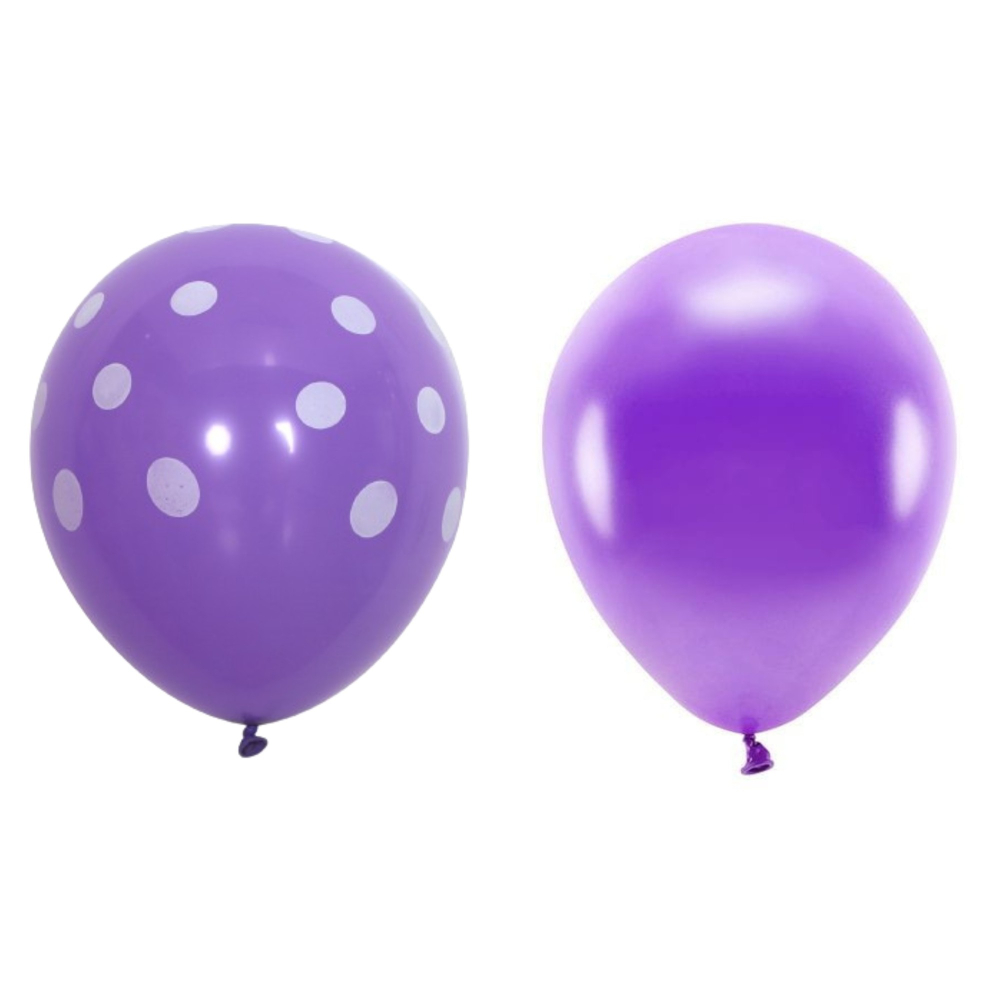 Set 10 Baloane din Latex, Model Party cu Buline si Simple, 30 cm, Mov, 2.8 g