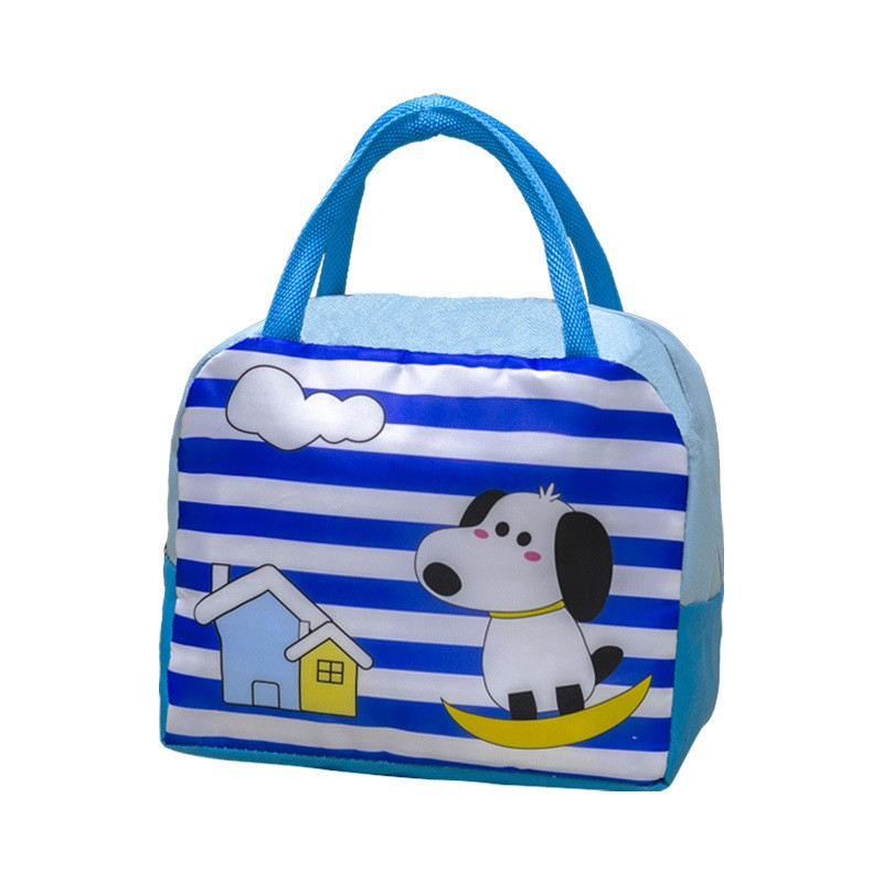 Continut Pachet: Geanta Termoizolanta pentru Copii, Flippy, 23x13x19 cm, Model Imprimeu Catel, din Folie de Aluminiu si Panza Oxford, Albastru/Alb