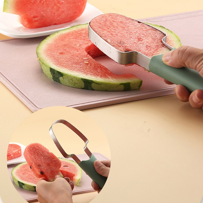 Taietor Decojitor pentru Pepene, pentru Legume si Fructe, Multifunctional, Set din 3 Parti, Otel Inoxidabil si Plastic PP, 22.5 x 7 cm Verde