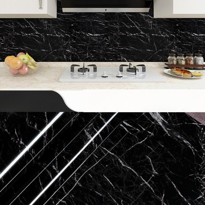 Tapet Autocolant pentru Bucatarie, Rola cu Efect de Marmura, Folie Autoadeziva, 40cmx1m, Negru