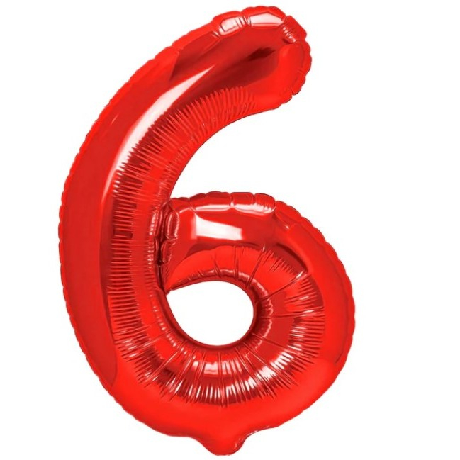 Balon din Folie Metalizata Figurina Cifra, Tema Aniversare 80 cm, Ambalaj Individual, Pai inclus, Umflare cu Aer sau Heliu, Rosu, Cifra 6
