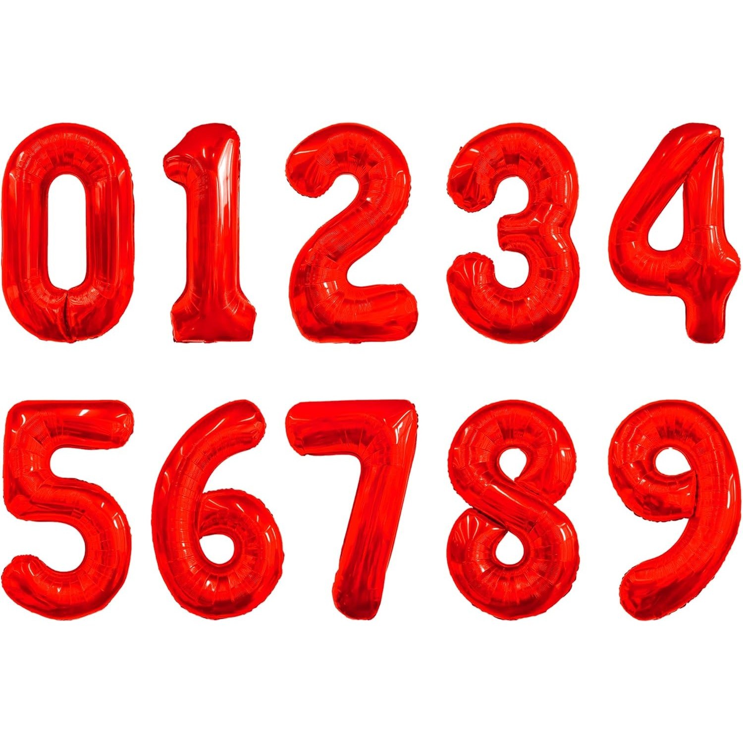 Balon din Folie Metalizata Figurina Cifra, Tema Aniversare 80 cm, Ambalaj Individual, Pai inclus, Umflare cu Aer sau Heliu, Rosu, Cifra 9