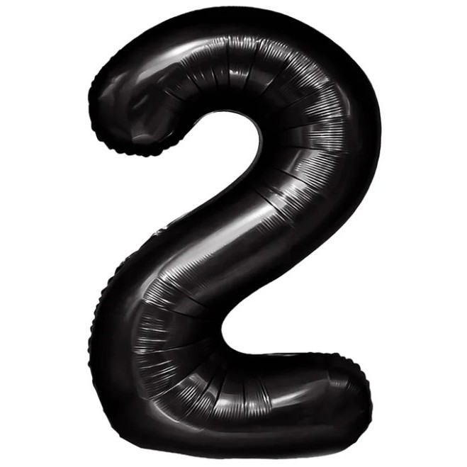 Balon din Folie Metalizata, Figurina Cifra, Tema Aniversare 80 cm, Ambalaj Individual, Pai inclus, Umflare cu Aer sau Heliu, Negru, Cifra 2
