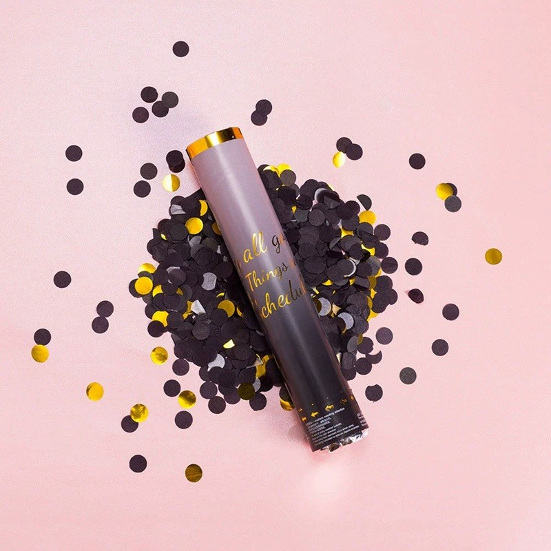 Tun Confetti Petrecere, Lungime 30 cm, Negru/Auriu