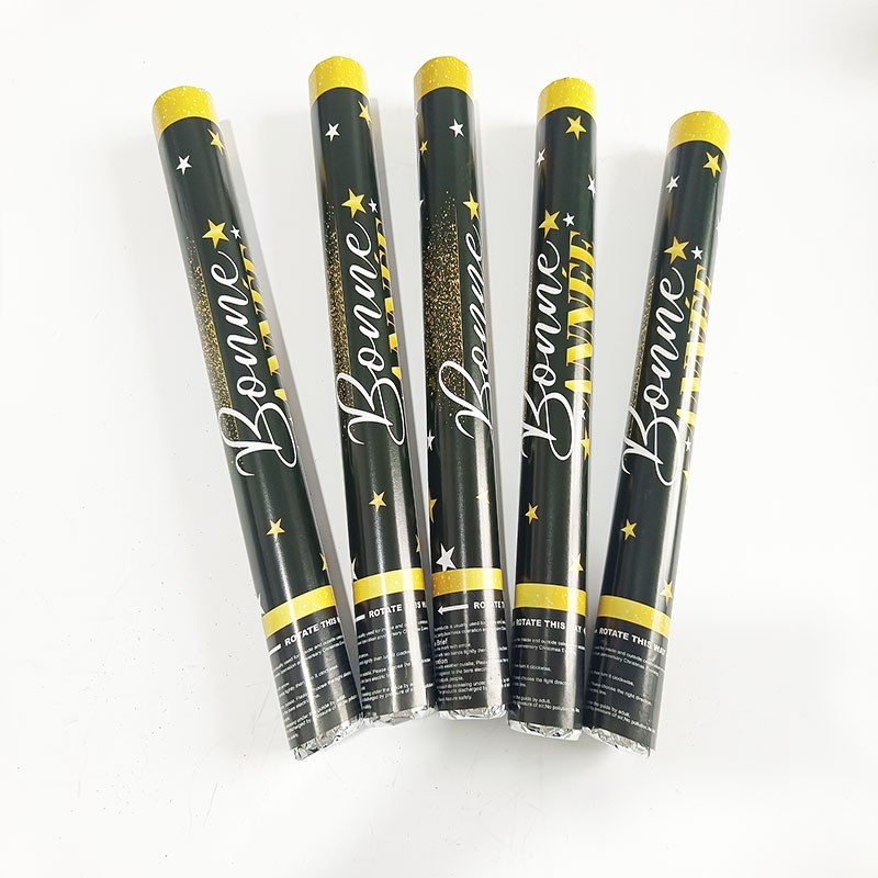 Sărbătorește intrarea în noul an cu stil! Tubul de Confetti – Bonne Année de 60 cm este accesoriul perfect pentru petrecerile de Revelion, adăugând un efect vizual spectaculos cu confetti în formă de steluțe aurii și argintii.