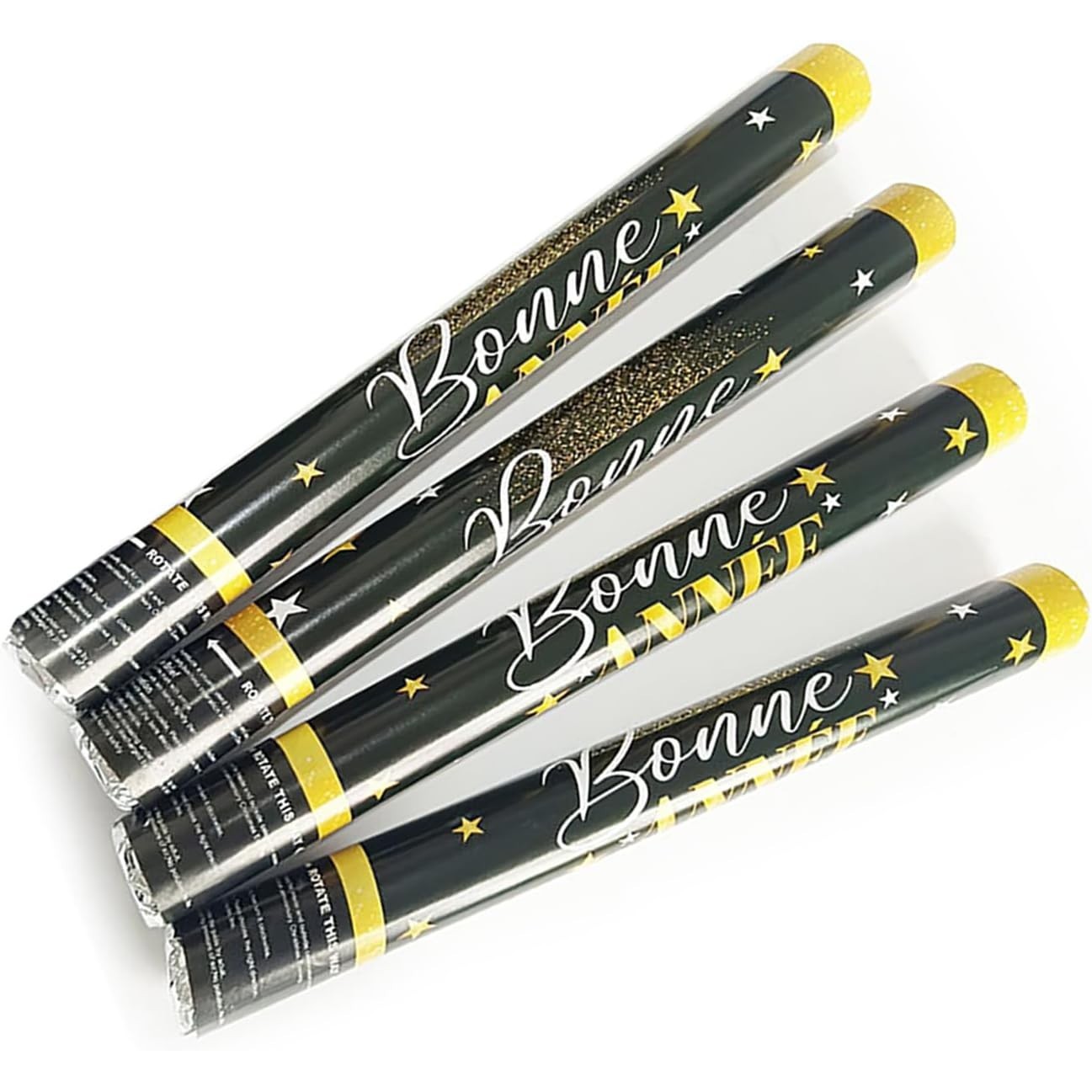 Sărbătorește intrarea în noul an cu stil! Tubul de Confetti – Bonne Année de 60 cm este accesoriul perfect pentru petrecerile de Revelion, adăugând un efect vizual spectaculos cu confetti în formă de steluțe aurii și argintii.