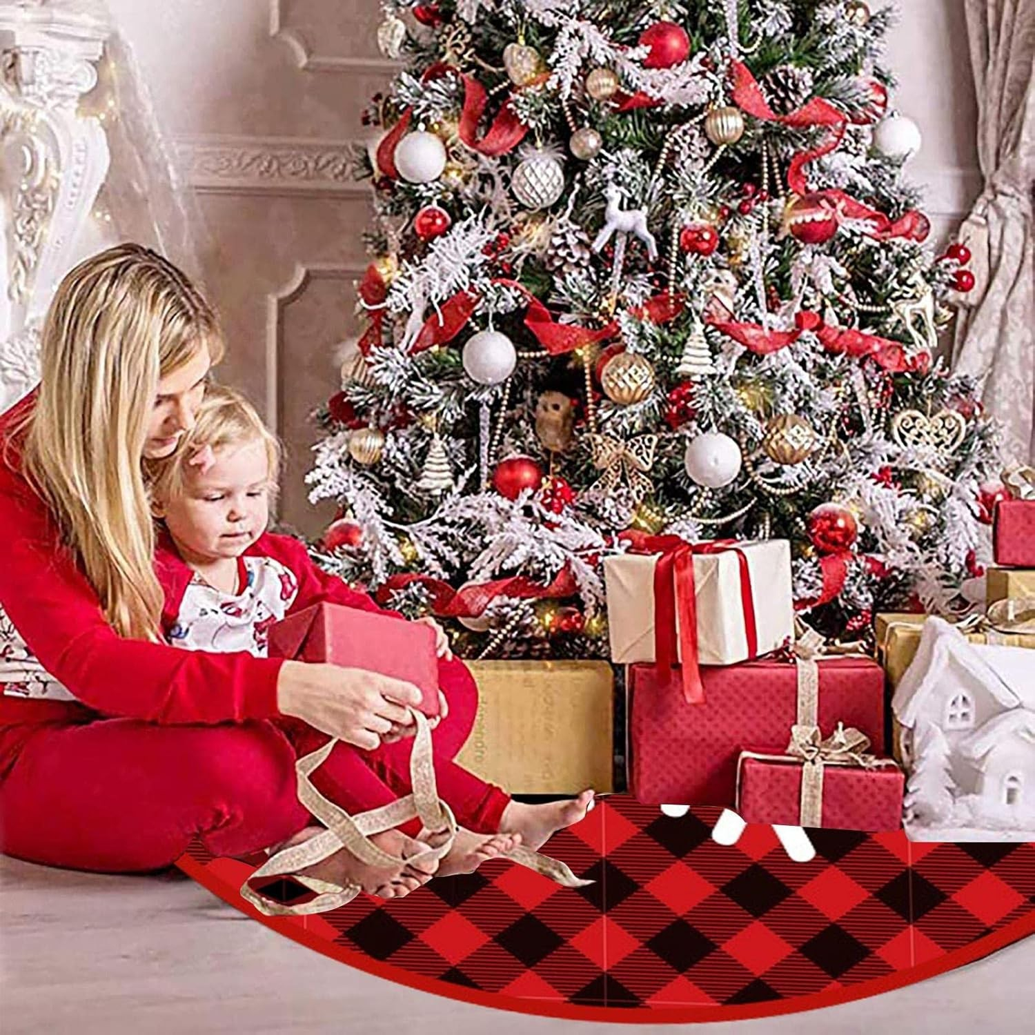 Dimensiuni ideale: Cu dimensiuni atent gândite, covorașul se potrivește perfect sub bradul tău de Crăciun, amplificând frumusețea acestuia. Este suficient de mare pentru a adăposti cadourile și accesoriile festive, dar nu atât de mare încât să îl facă greu de integrat în decor.