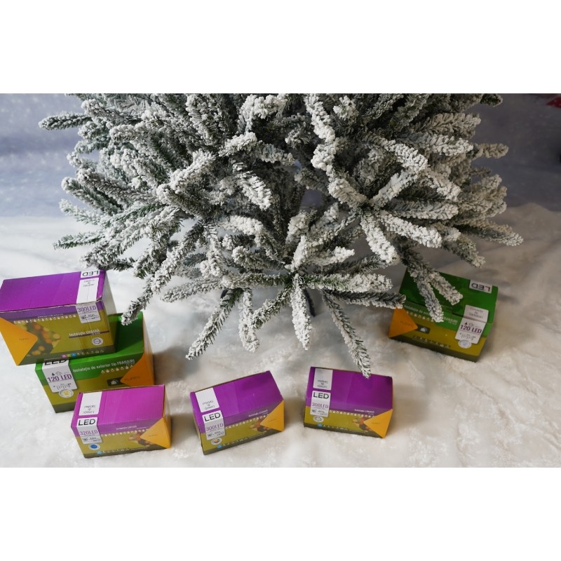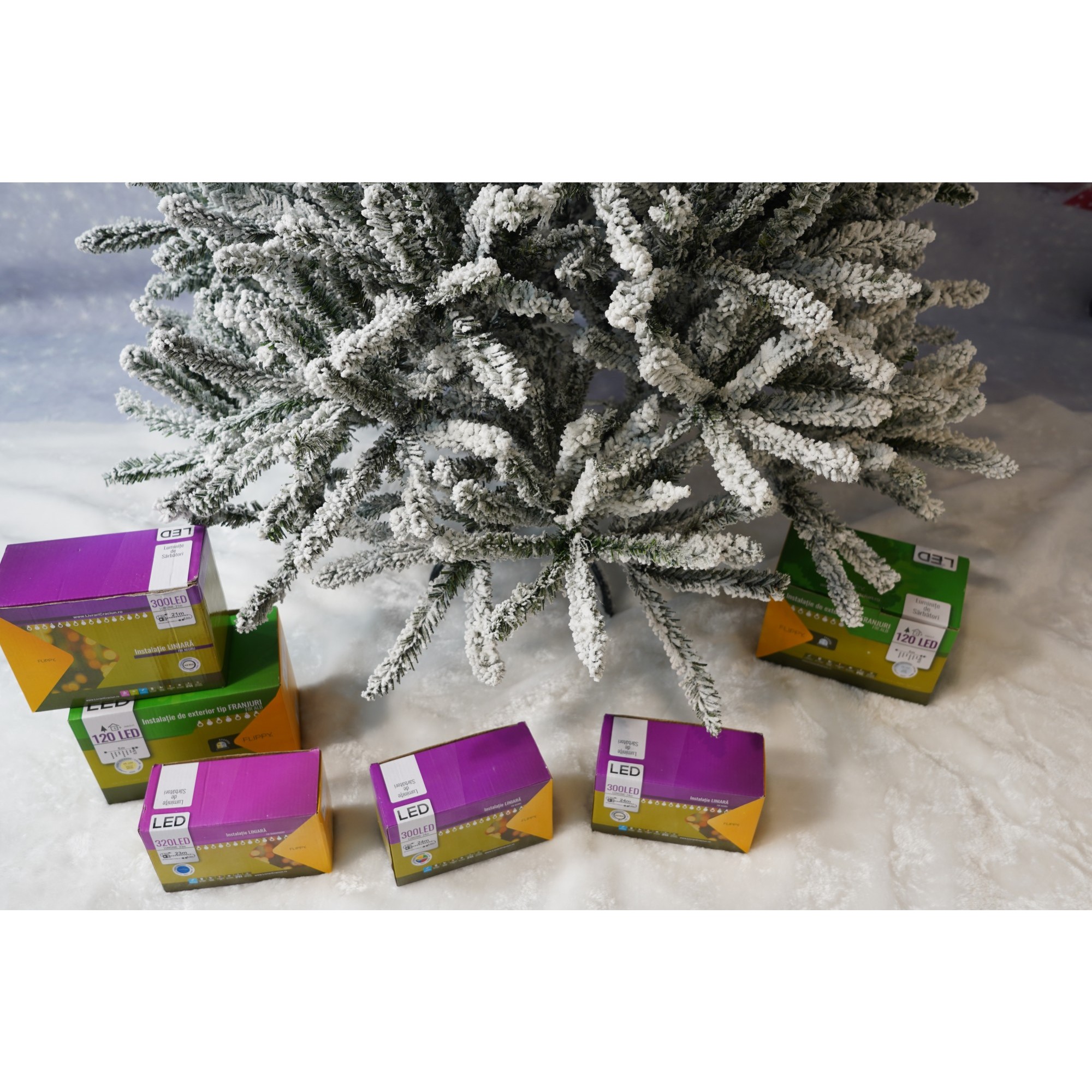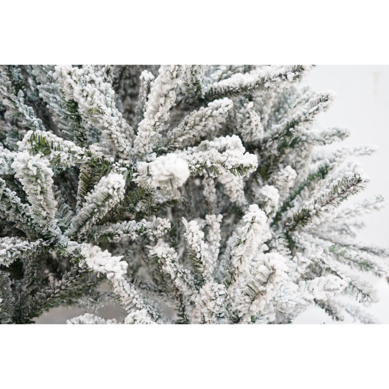Brad caracterizat prin simplitatea și eleganța sa care asigura cea mai buna combinatie pret-calitate, pentru perete/colt, culoare verde, pulverizat alb-tip zapada, diametrul inferior 110cm, marimea 180cm