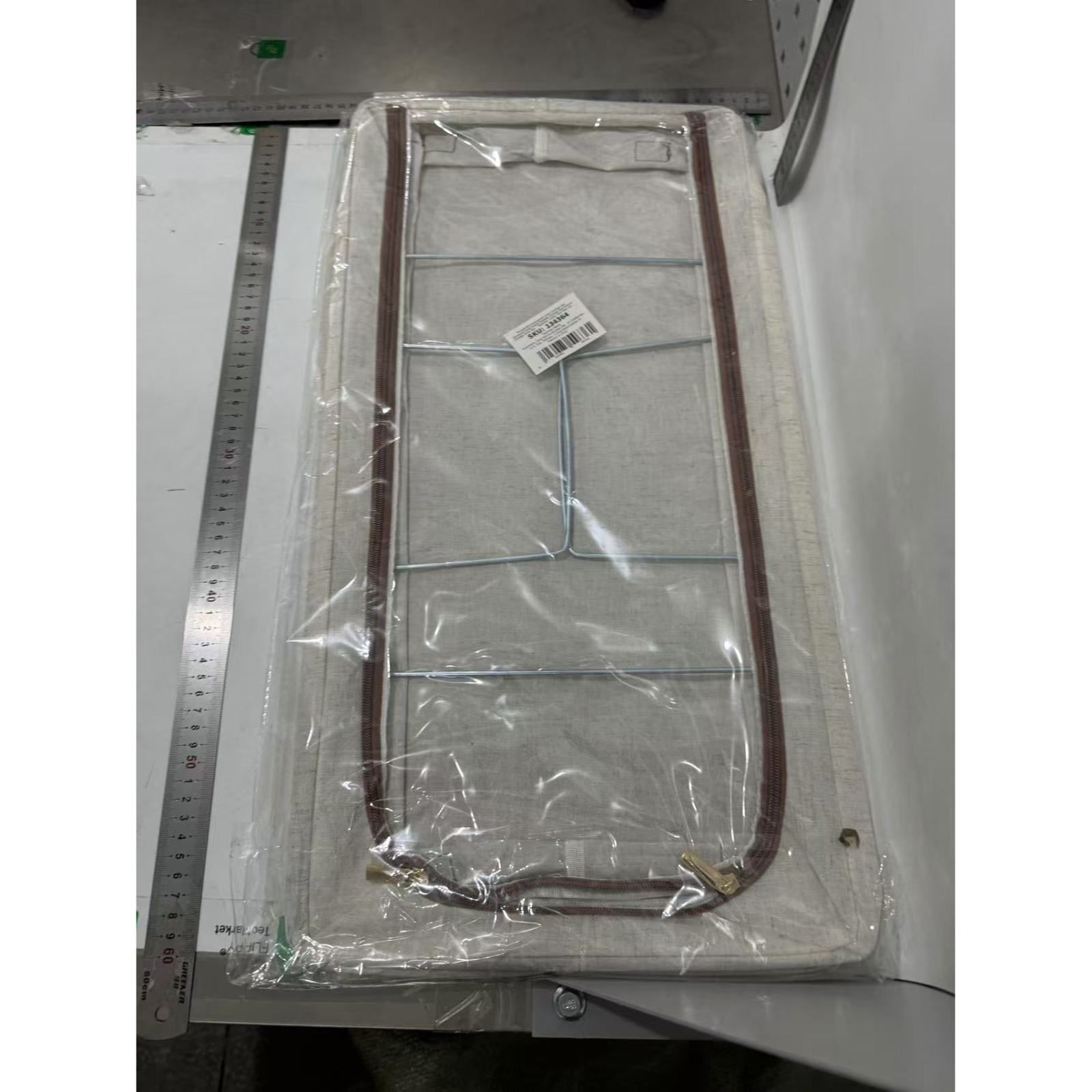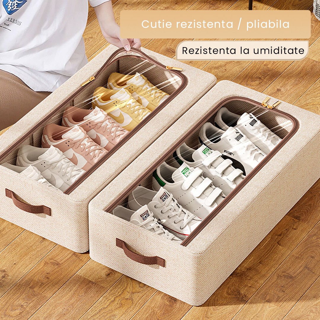Cutie Depozitare cu Cadru Metalic, pentru Incaltaminte, Haine, Lingerie, Fermoar Calitativ, Fereastra Transparenta, Manere Laterale, 60 x 30 x 15 cm Bej