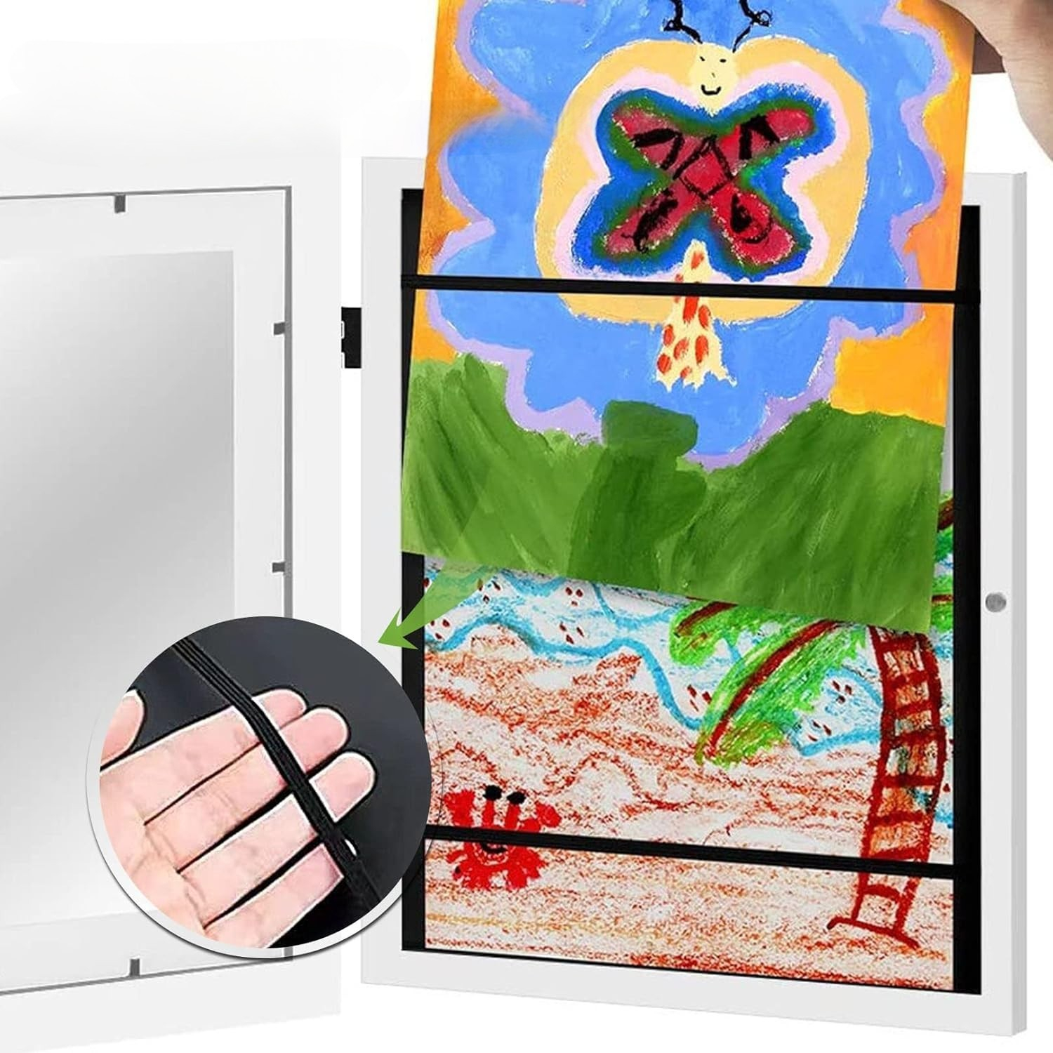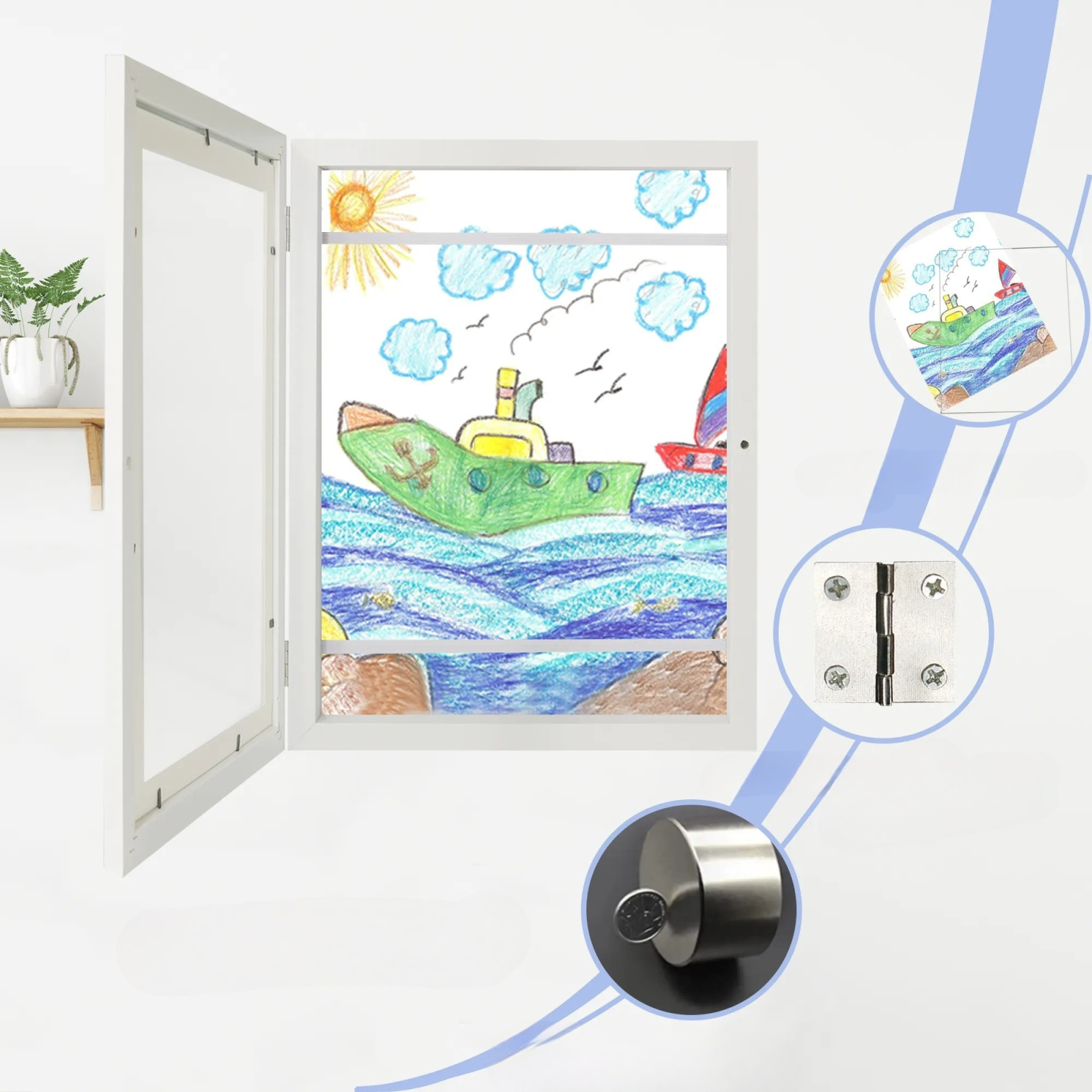 Rama Foto Flippy, din Lemn, cu Spatiu Pentru Depozitare, Pentru Desene si Picturi A4, Sticla Securizata, Rama MDF, Alb