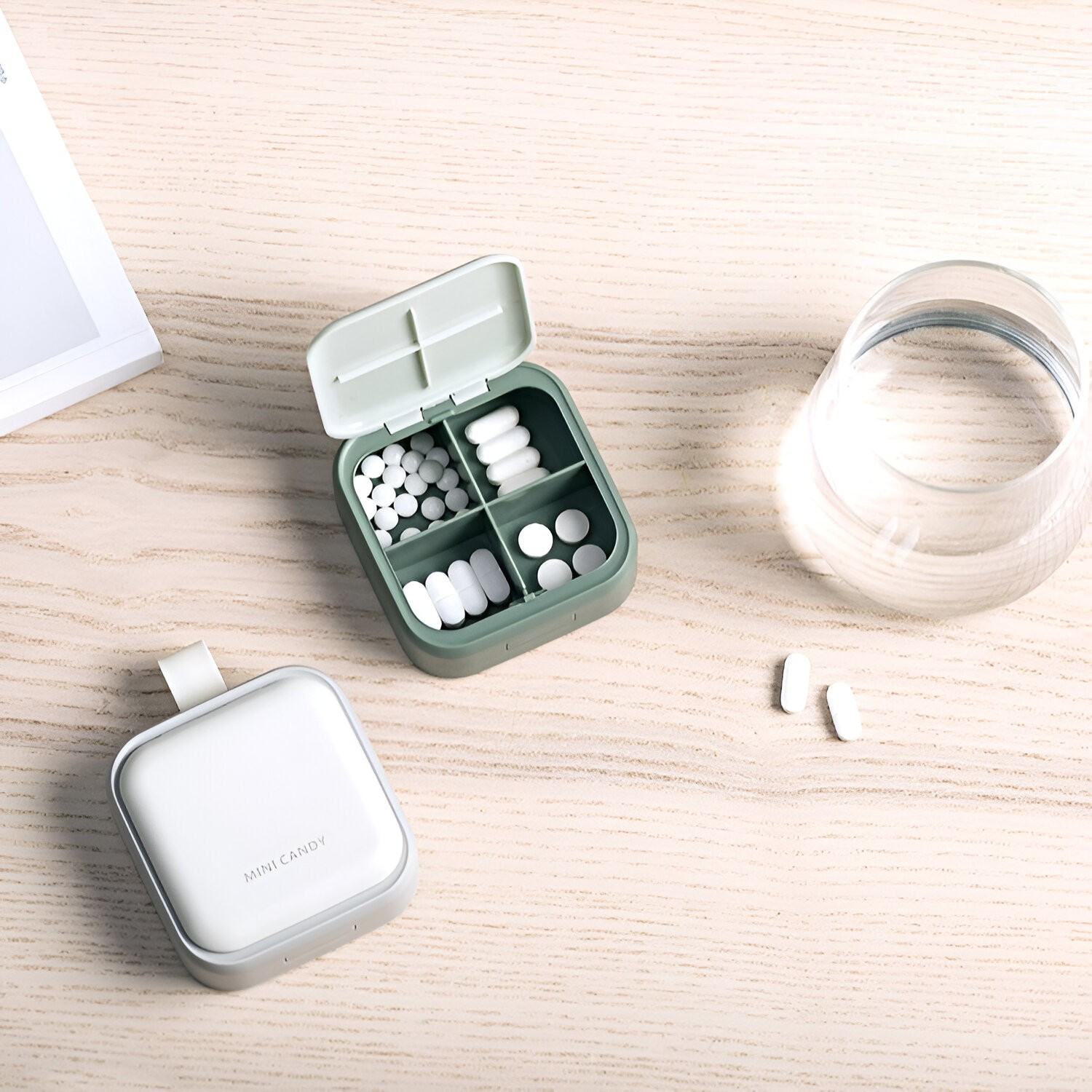 Cutia noastră de pastile este echipată cu clips care poate fi acționat cu o singură mână și deschise prin apăsarea cu degetul mare, ceea ce este foarte convenabil.