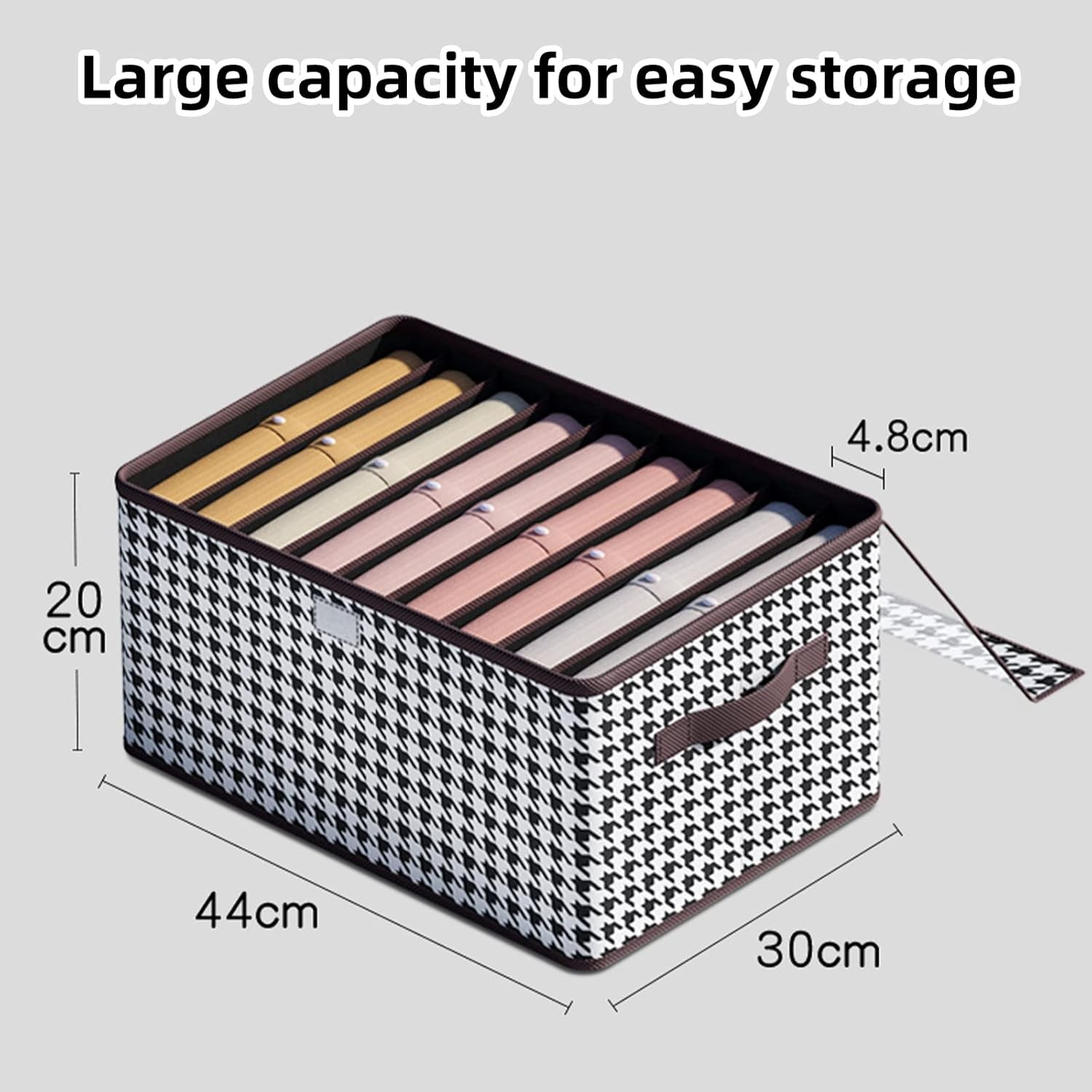 Compartimente multiple: Cu cele 9 compartimente spațioase, cutia este perfectă pentru a organiza lenjeria intimă, șosetele, sutienele și alte mici accesorii. Fiecare compartiment este gândit pentru a facilita accesul rapid și ușor la articolele dorite, prevenind totodată aglomerarea și confuzia.