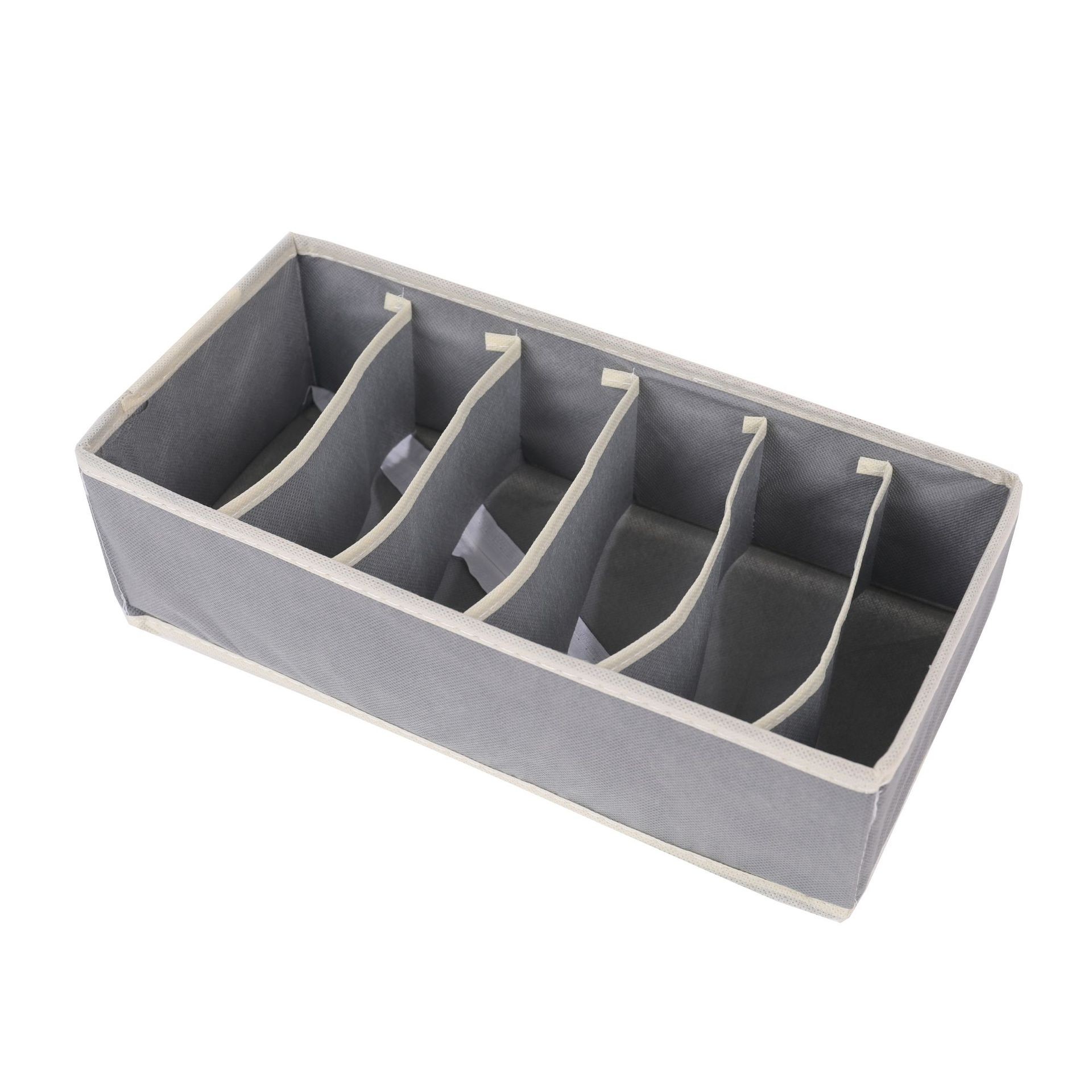 Cutie de Depozitare pentru Lenjerie, Șosete și Sutiene, Material Textil, 6 Compartimente, 32 x 16 x 10 cm, Culoare Gri